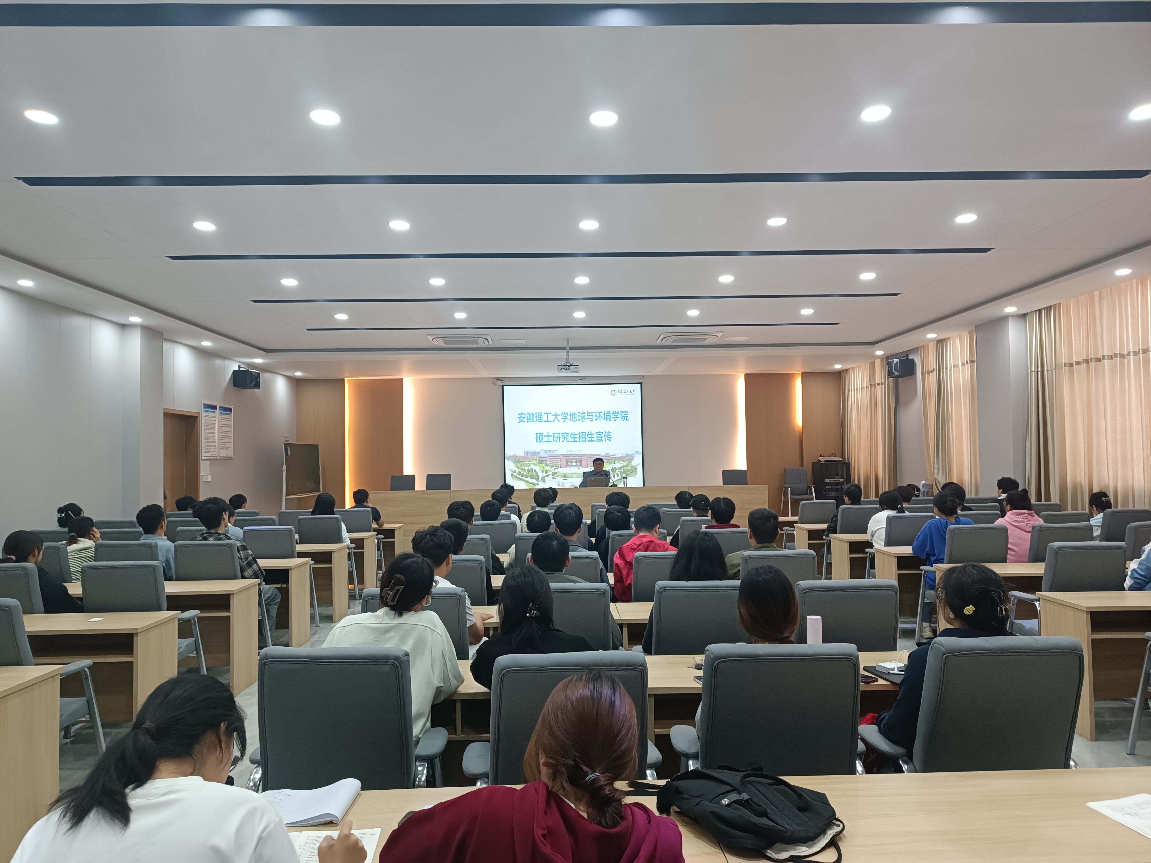 为进一步做好2025年硕士研究生招生宣传工作,加强与兄弟高校联系,强化学生考研信心,10月10日下午,土木工程学院联合安徽理工大学地球与环境学院学院在水木楼西301报告厅开展2025年研究生招生宣传及交流活动。安徽理工大学地球与环境学院学院院长刘启蒙、学院党总支书记王瑜、副书记程志鹏及毕业班师生参加。