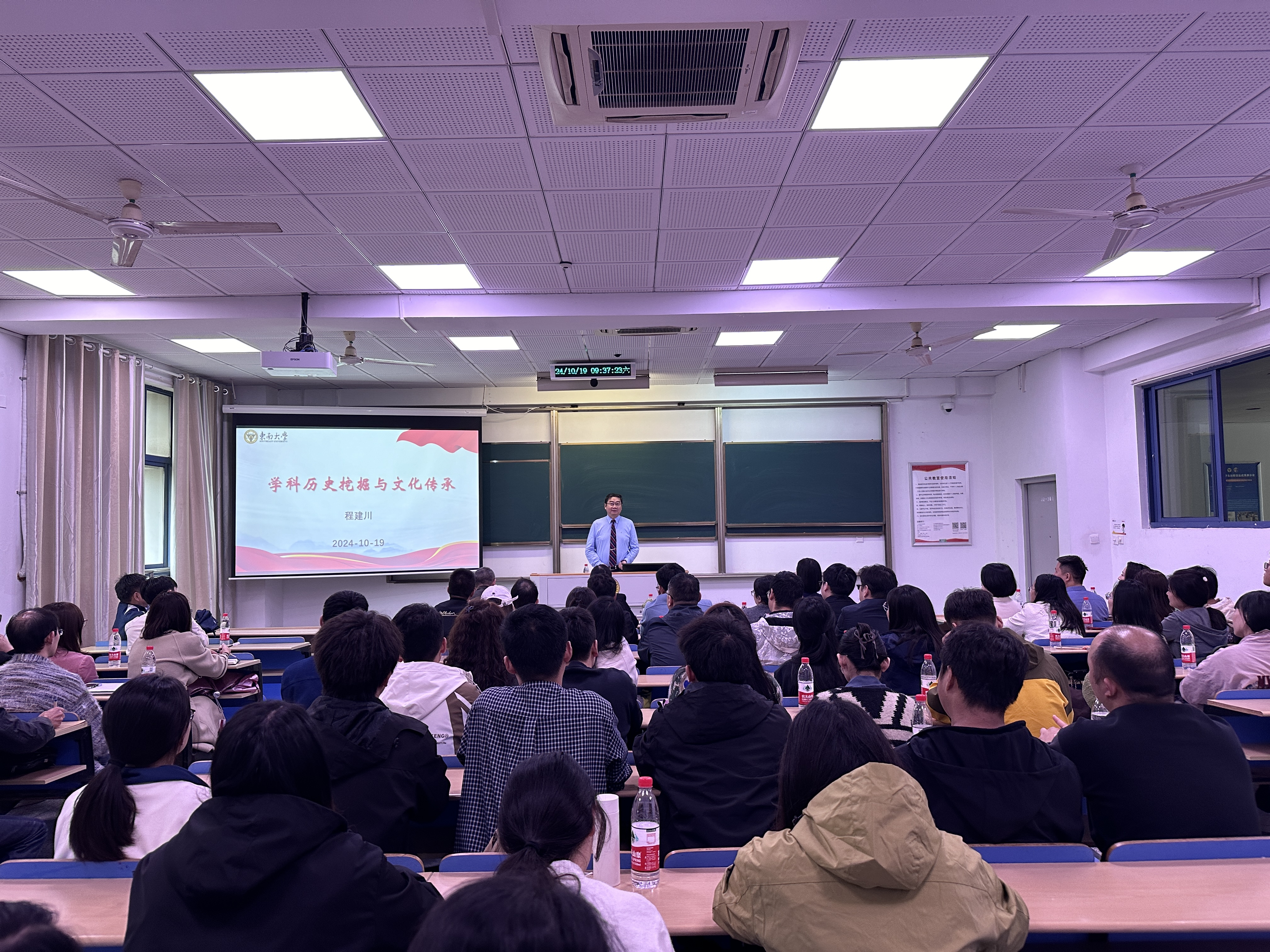 随后,东南大学交通工程学院程建川教授向全体教职工作《学科历史挖据与文化传承》主题报告,他结合史实照片资料,从道路学科概况、道路学科历史挖掘、道路学科文化凝练与传承三个方面,介绍了东南大学道路工程系的发展历史,剖析了学科精神积淀,并与参会教师进行了交流研讨。