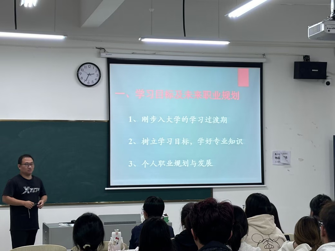 会上,郭瑞老师首先以学习目标及未来职业规划为主题,就过去几周的学习状况展开讨论。肯定了同学们的上课积极性,同时也指出了不足与改进方向。郭瑞老师要求全体同学认真对待每一门课程,用心上好每一节课,有问题及时与老师沟通,提高学习效率。郭瑞老师还嘱咐同学们要有明确的人生目标,要珍惜时光,脚踏实地、专心学习,尽快从高中学习状态转换为大学学习状态,明确学习目标,增强学习动力,锤炼过硬本领,从而实现学习与生活的相辅相成。同时也要根据自身具体情况做好未来职业规划。