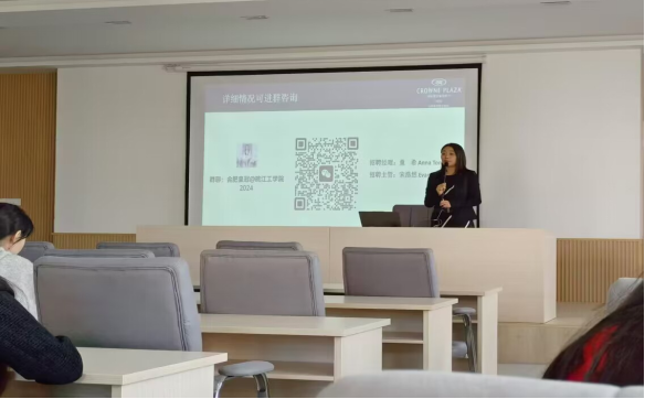 为进一步深化校企合作,推动教育与产业的紧密结合,助力学生就业与发展,管理学院2021级酒店管理专业共有60余名同学于2024年11月2日下午在弘毅楼209会议室参加合肥皇冠假日酒店招聘双选会。