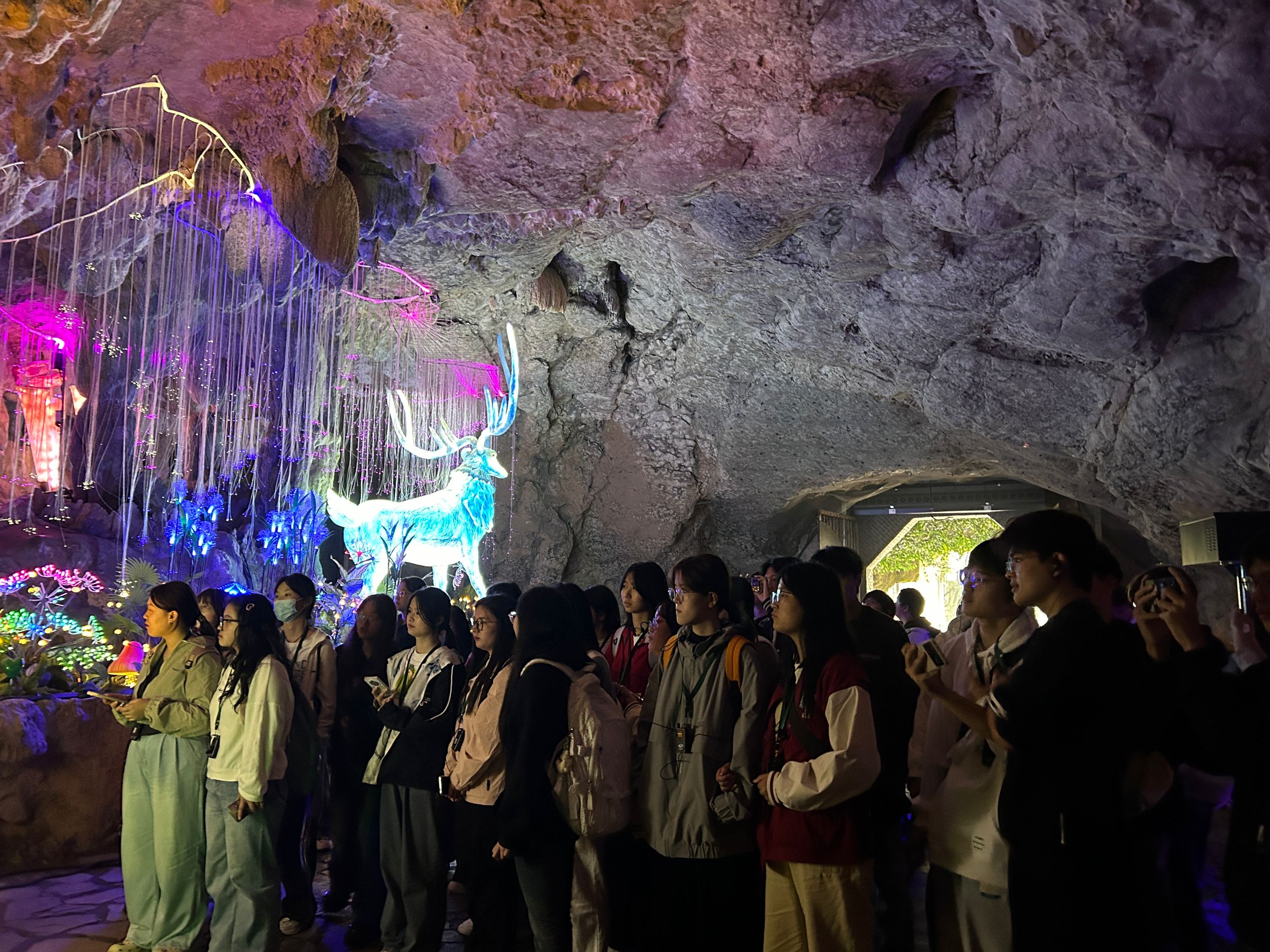 本次实习路线为宣城太极洞—马鞍山采石矶—芜湖安徽省气象博物馆—合肥安徽省地质博物馆和安徽省博物馆。10月28日,实习团队出发前往宣城太极洞,在指导教师的带领下开展了喀斯特地貌的自然地理综合实习。太极洞是典型的喀斯特地貌,学生在老师带领下对洞内的流水沉积、冲刷痕迹,石钟乳、石笋、地下河等观察学习。