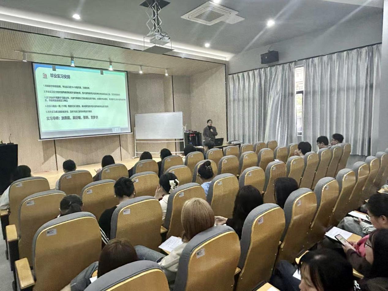 随后,施主任对毕业设计的具体流程和要求进行了详细解读,涵盖了选题方向、时间安排、内容格式规范等多个方面。她特别强调了导师在毕业设计过程中的关键作用,并鼓励学生主动与导师沟通,明确研究方向,合理安排时间,确保毕业设计工作的顺利进行。同时,金花副院长也对导师们提出了严格要求,要求他们认真履行指导职责,为学生提供全面的支持和帮助。