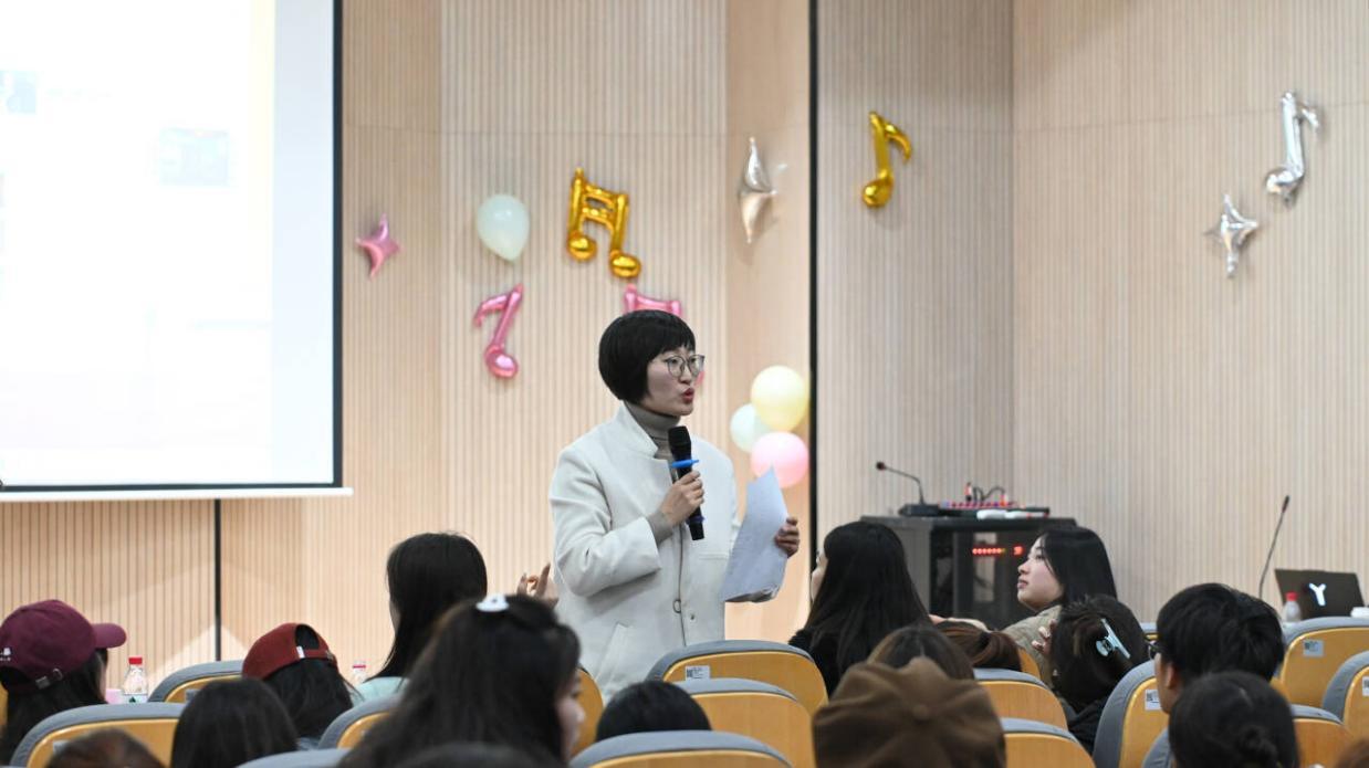 活动最后,程楠楠副书记对比赛做了精彩点评,她首先对选手们精湛的歌唱技巧,热情洋溢的参赛状态表达了高度的赞赏,也围绕歌曲选择、演唱技艺、舞台表现等几个方面,对参赛者提出建议。她表示本次活动的顺利开展离不开学院各级学生组织的密切合作和精心准备。最后她勉励全体同学保持昂扬向上的生活学习态度,在艺设院这方舞台上尽情展示自我风采、绽放青春之花!