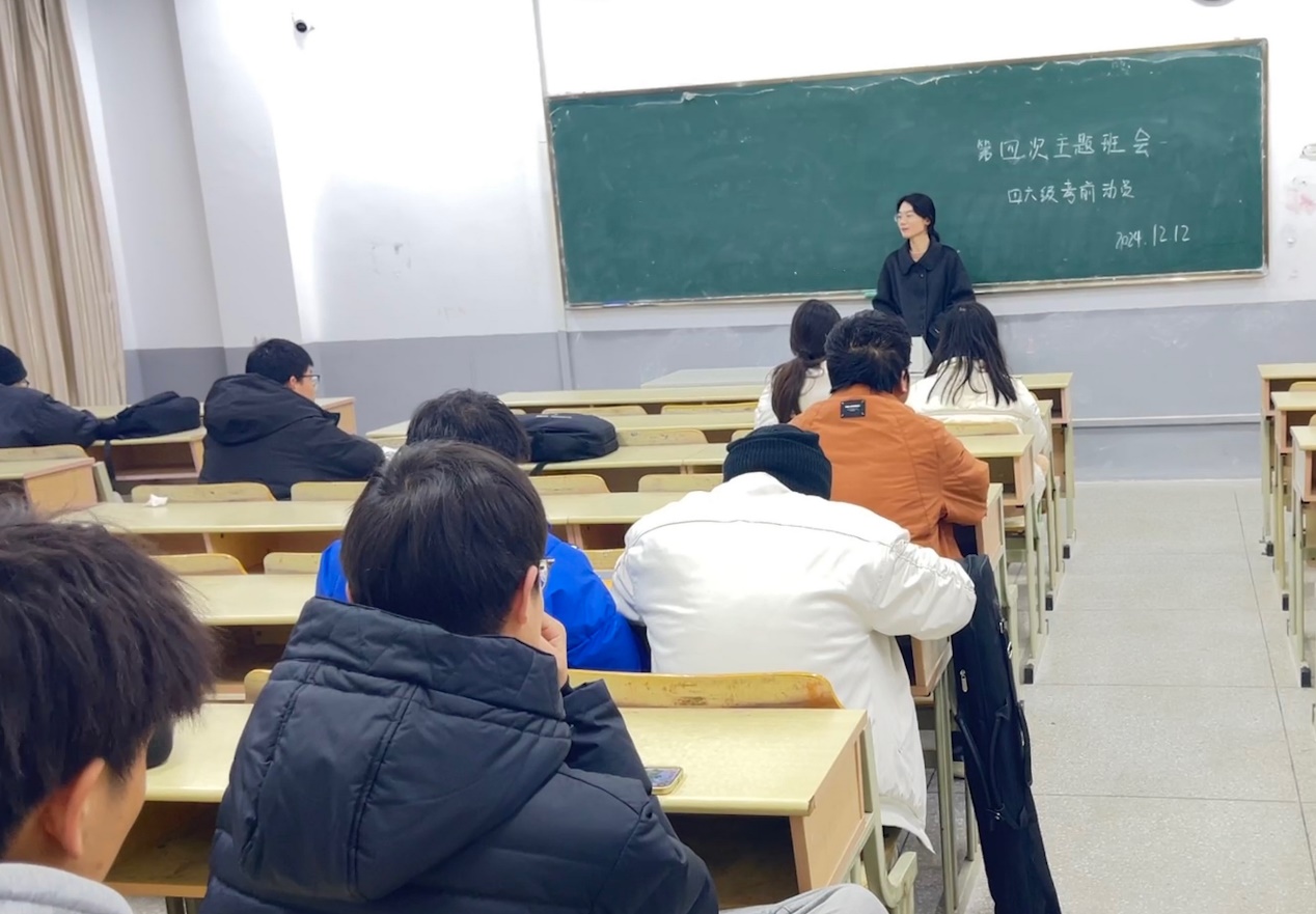 为了帮助同学们在全国大学生英语四六级考试中取得突破,12月12日,土木工程学院23级地质工程专业在笃学楼B307召开了“英语四六级考前动员”学风建设主题班会。班会由班主任耿瑞娟主持召开,23级全体地质工程学生参加。