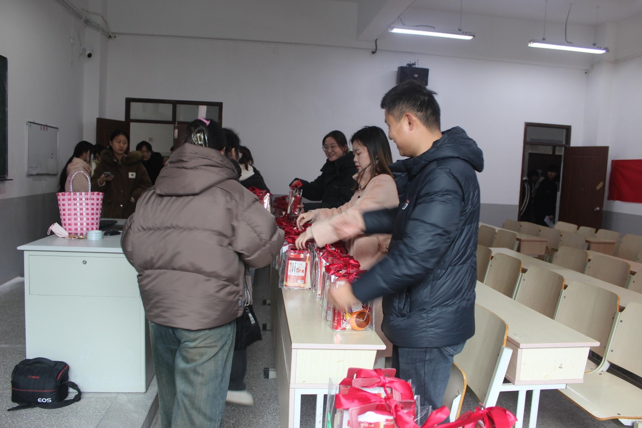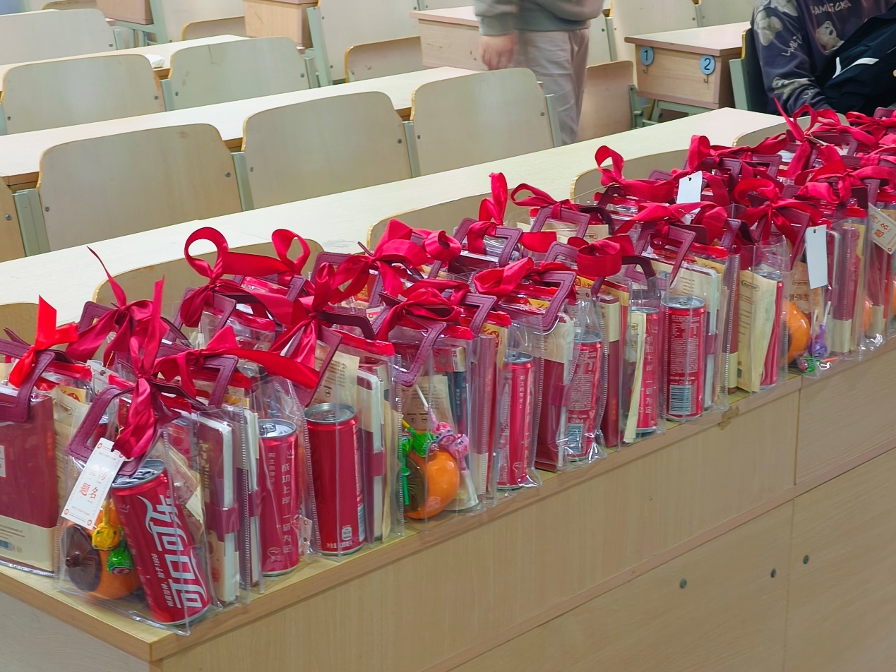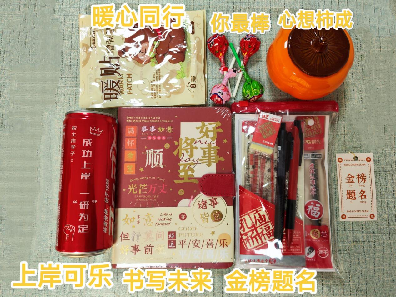 活动现场,学院党总支副书记程志鹏、分团委书记俞越以及 2021 级专职辅导员杜可表达了对考研学生的殷切期望与坚定支持,并亲自为同学们送上了充满关怀的暖心大礼包。每一份礼物都承载着学院对考研学子的殷切期望,也为学子们在寒冬中增添了一份温暖与力量。