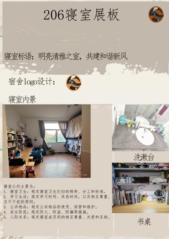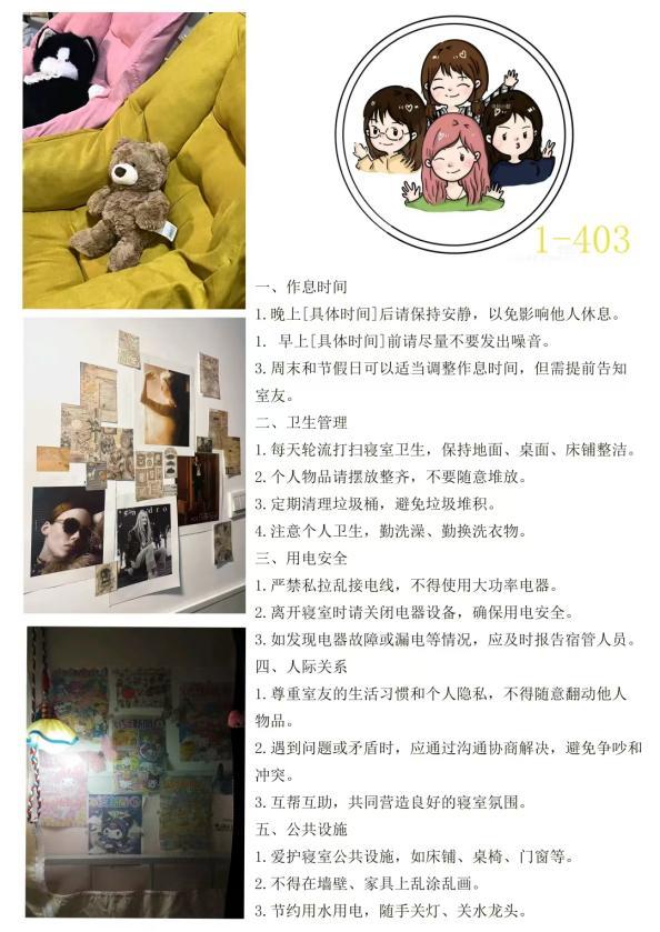 评审现场,老师们从标语的内涵力、公约的合理性,形象的展示度,展板设计的艺术性对作品进行综合评定。评选过程严谨公正,确保每一份获奖作品都是对寝室美化建设主题的深度挖掘和完美诠释。经过评选和投票,最终获奖名单如下: