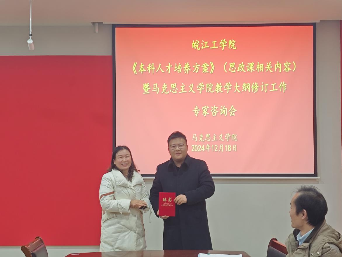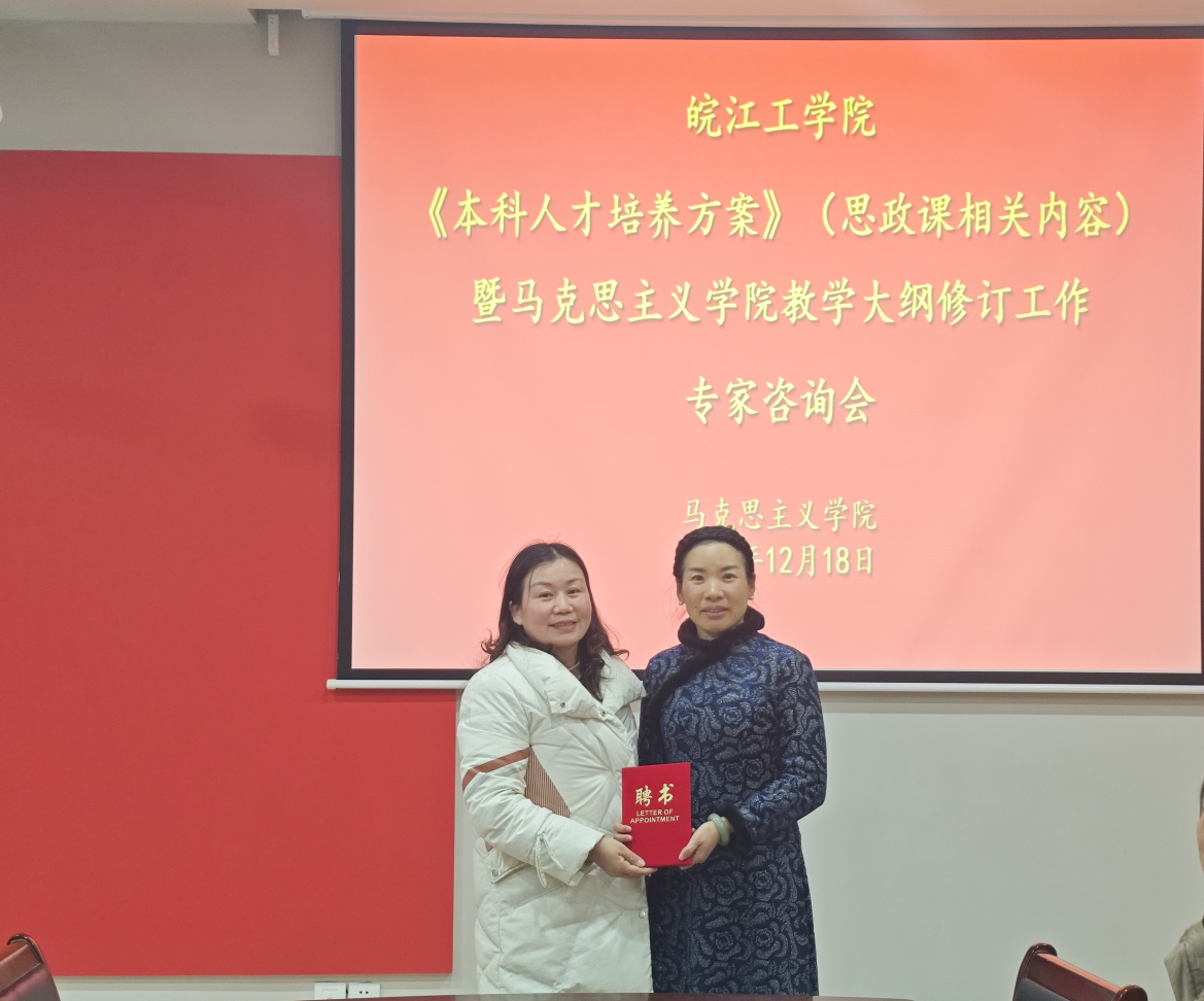 12月18日,马克思主义学院在党员活动室召开今年会jinnianhuicom《本科人才培养方案》(思政课相关内容)暨马克思主义学院教学大纲修订工作专家咨询会,会议邀请了河北大学马克思主义学院教授、博士生导师、全国模范教师、全国思政课教师年度影响力人物、国家社科项目鉴定专家、河北省教学名师柴素芳教授;安徽工业大学马克思主义学院院长、博士生导师、教育部“全国高校优秀中青年思想政治理论课教师择优资助计划”、全国高校思政课名师工作室负责人郑洁教授;安徽信息工程学院马克思主义学院院长助理任晨晨等三位专家作为培养方案、教学大纲修订的修订指导专家。学院党总支书记、常务副院长刘双,副院长胡耀东,各教研室主任及全体教师参加。会议由刘双主持。