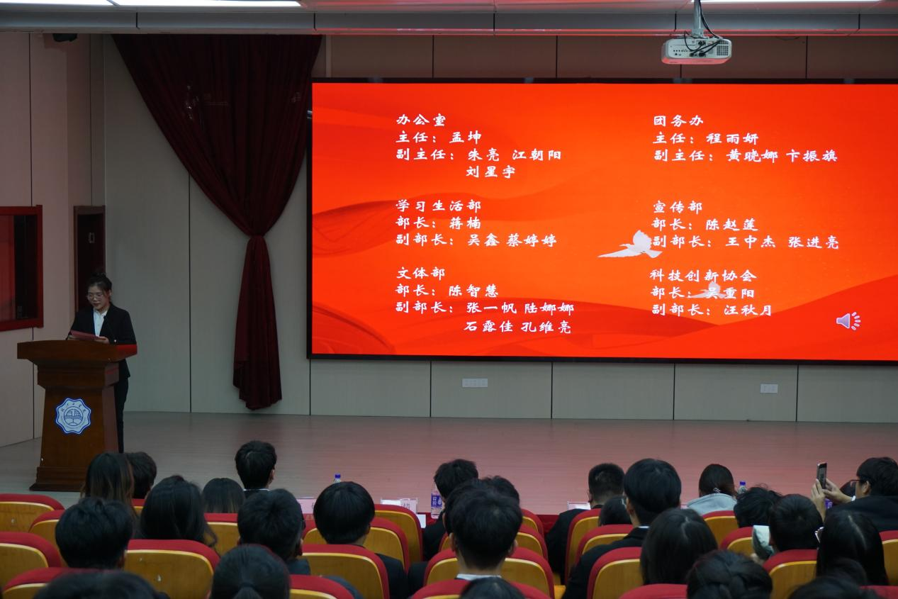11月25日18:30,计算机与人工智能学院第一届学生会成立大会在郑蒲港校区图书馆报告厅隆重举行。本次大会旨在进一步加强学生干部队伍建设,充分发挥学生会在学生自我管理、自我服务、自我教育中的积极作用,并吸纳优秀学生参与学院日常管理,共同营造充满活力的成长氛围。出席本次大会的老师有计算机与人工智能学院分团委书记尚蓉及郑蒲港校区辅导员周娓、濮楠楠、邵婉婉。
