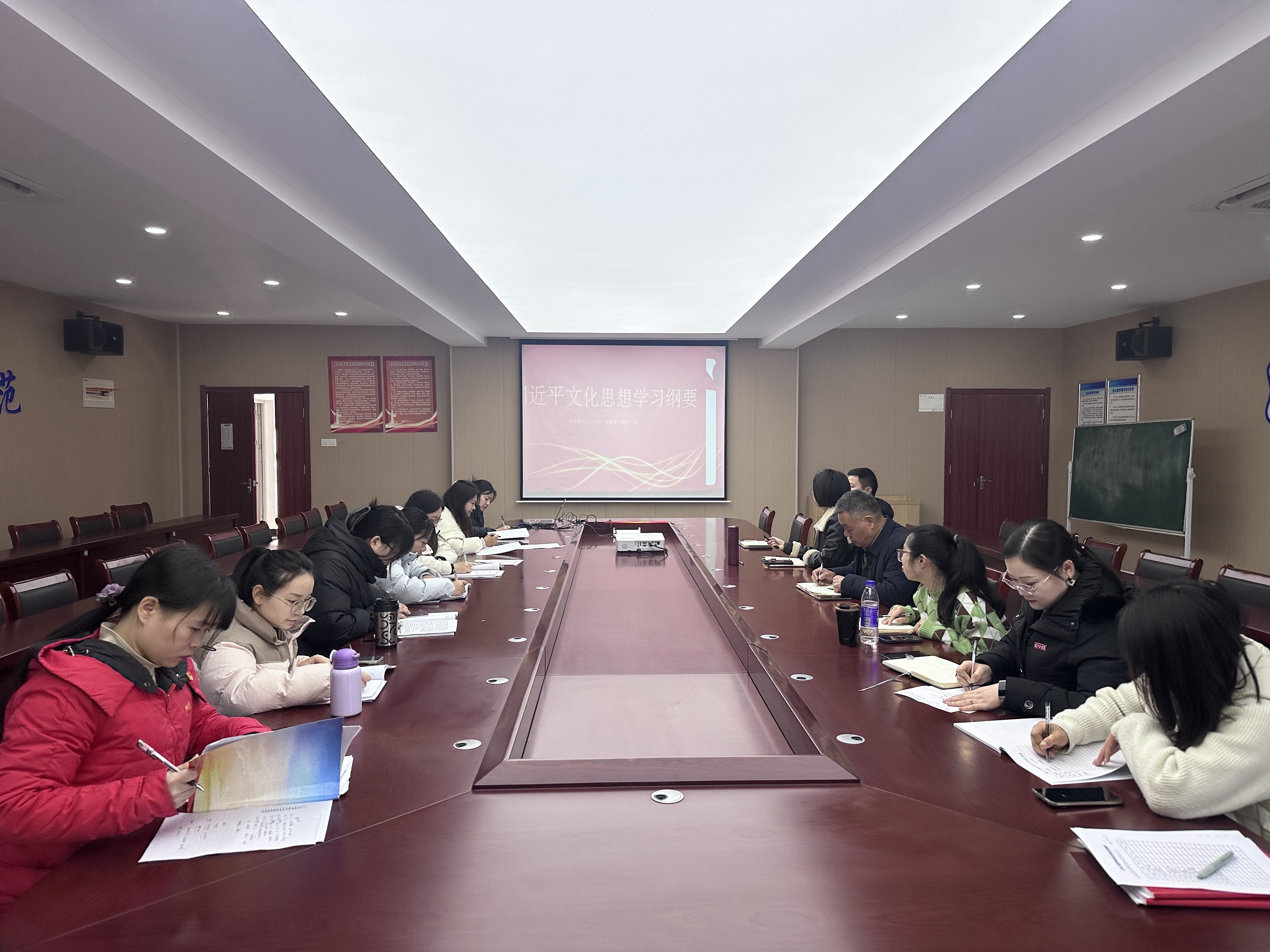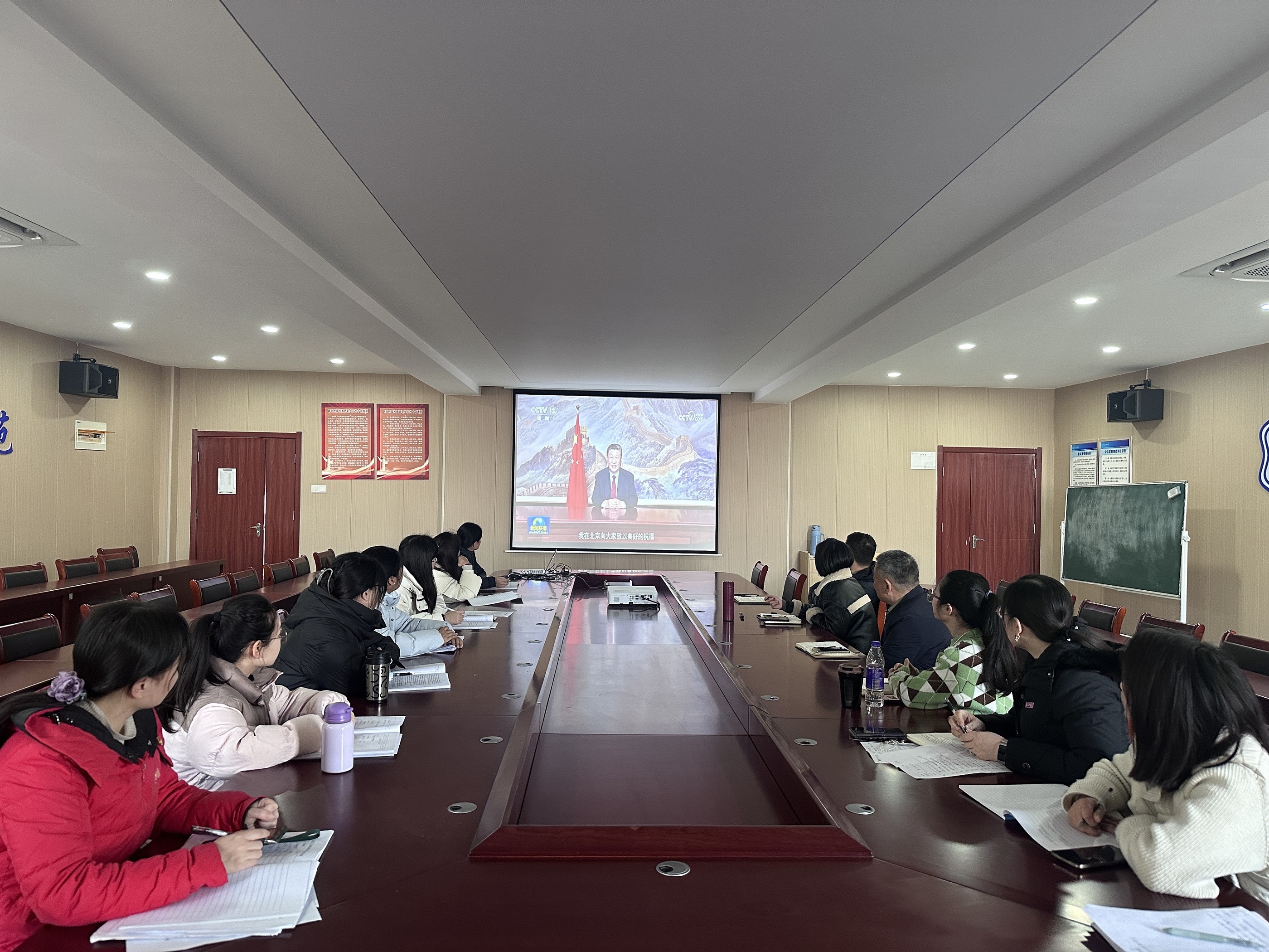 会上,党总支书记王瑜带领参会人员学习了《习近平文化思想学习纲要》相关内容,详细阐述了文化自信的重要性。与会人员共同学习观看了《国家主席习近平二〇二五年新年贺词》视频。