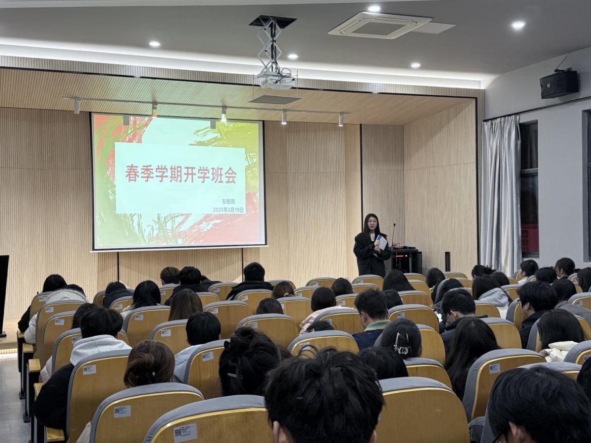 23级三个专业于2月18-20日分别召开主题班会,辅导员左镜鸥表示为迎接即将到来的学校本科教学合格评估工作,广大同学们应更加严格要求自己,学生干部们要起模范带头作用。会上,辅导员还就近期补考的考风考纪,早晚自习的出勤及纪律,宿舍管理相关规定做要求。希望同学们能够自觉遵守校纪校规,以全新的面貌投入新学期的学习和生活。