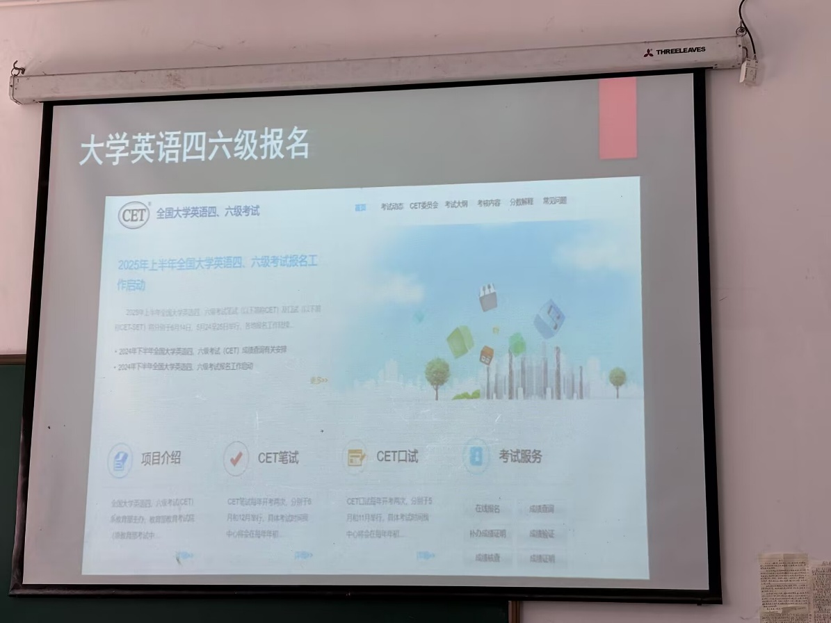 接着,郭瑞老师通过PPT展示为同学们详细介绍了四六级考试的报名流程,并提醒同学们要牢记报名时间节点,并对常见问题提供了相应的解决办法。