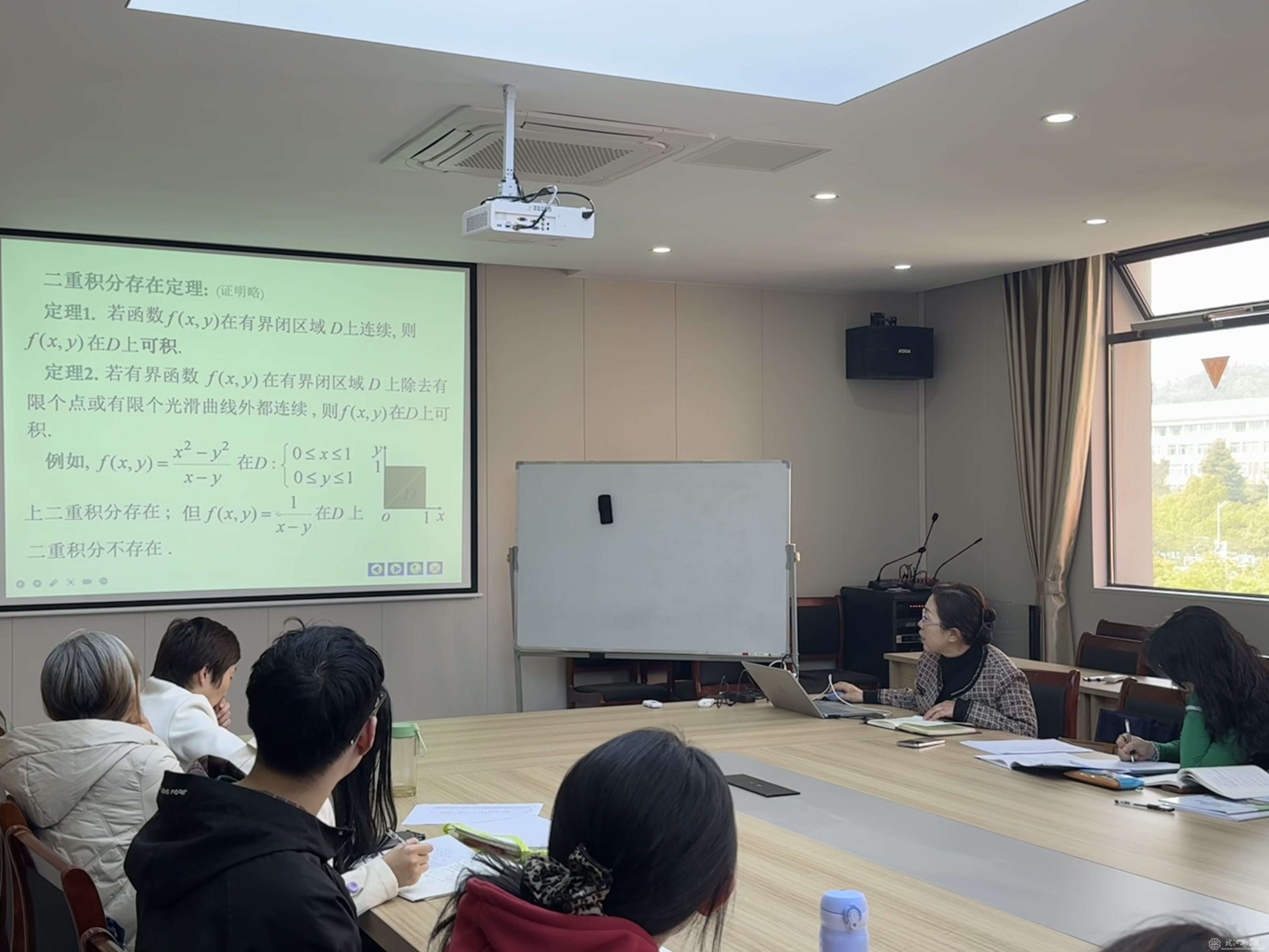 会议最后,范爱华以自己的高等数学课件为例,就提升课程质量方面分享了宝贵经验。她围绕二重积分的概念和计算,详细阐述了自己的课程设计理解与思路,从教学方法的选择到教学内容的组织,都进行了深入剖析。随后,范主任邀请其他参会教师积极参与探讨与交流,现场气氛热烈,教师们各抒己见,提出了许多建设性的意见和建议。
