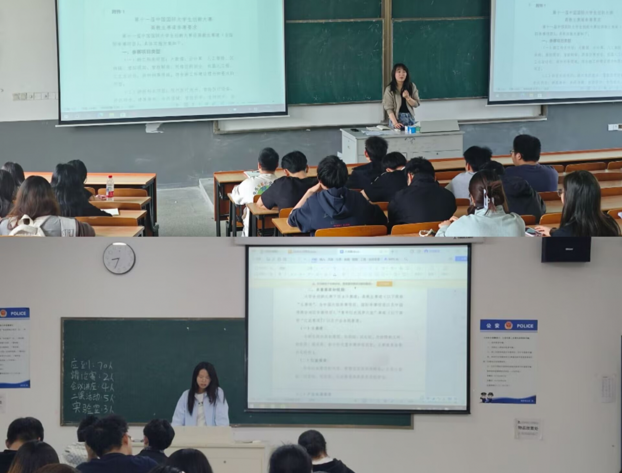 宣讲会由各专业辅导员主持,面向全体学生,旨在解读赛事规则、分享备赛策略,鼓励学生积极参赛。宣讲会上,辅导员结合通知文件,详细介绍了大赛的三大赛道(高教主赛道、“青年红色筑梦之旅”赛道、产业命题赛道)及组别设置,重点解析了学生的参赛方向、参赛需要准备的材料并详细梳理了大赛关键时间节点。参赛不仅能提升学生实践能力,更能推动科研成果转化,为就业创业积累竞争力。