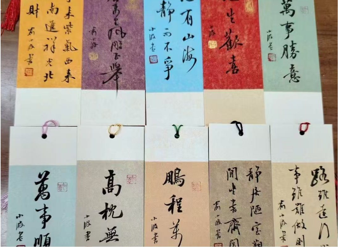 书签创作精彩纷呈,近百种诗句素材供给不及。学生们视情自由挑选诗句,在古风素雅的书签上,用硬笔工整书写。从横平竖直的起笔收笔,到撇捺的舒展流畅,每一个动作都细致入微,展示着年轻皖工学子的风采。