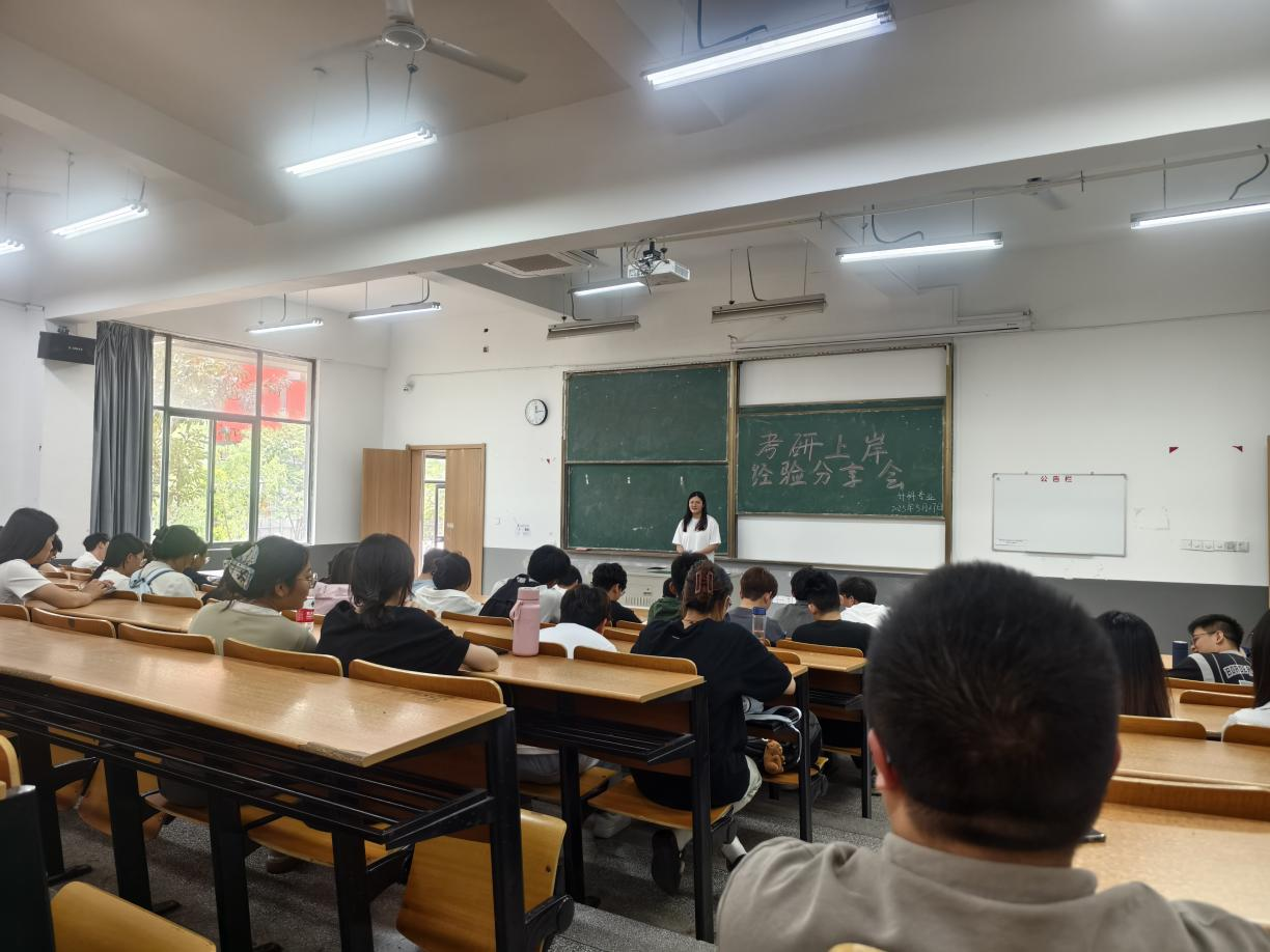 活动伊始,陈华艳老师以真挚致辞点燃全场热情。陈老师向成功上岸的学子致以热烈祝贺,并阐释了考研经验分享在班级学风建设和学生个人成长中的意义,引导同学们全神贯注聆听、踊跃互动交流,将学长的宝贵经验转化为自身考研规划的科学指南,在这场知识的盛宴中汲取奋进力量。