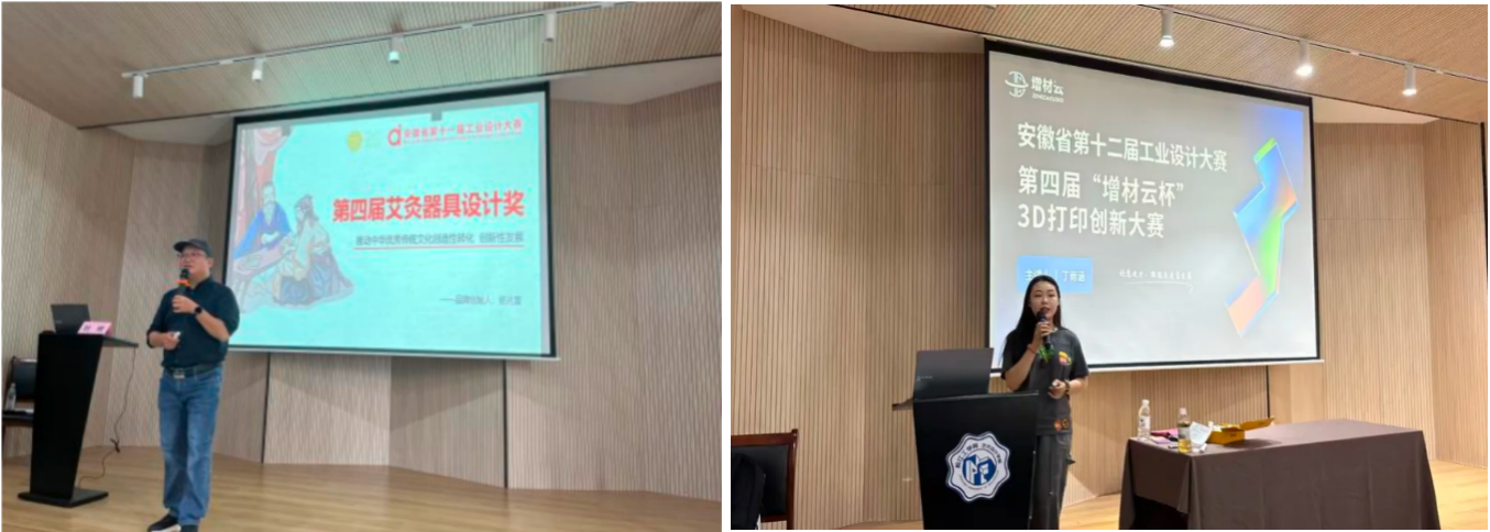 随后,刘峰会长就安徽省第十二届工业设计大赛部分分项赛的赛事主题、参赛要求做了详细的解读,包括“华菱汽车杯”长三角绿色设计大赛、艾灸器具设计奖等分项赛的赛事背景、主题、作品要求、赛事流程等。