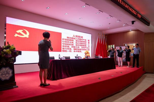 党课结束后,在副书记程楠楠的领誓下,全体党员师生高举右拳,重温入党誓词。铿锵有力的誓言响彻会场,字字千钧,进一步坚定了党员师生的理想信念,强化了他们的责任担当。