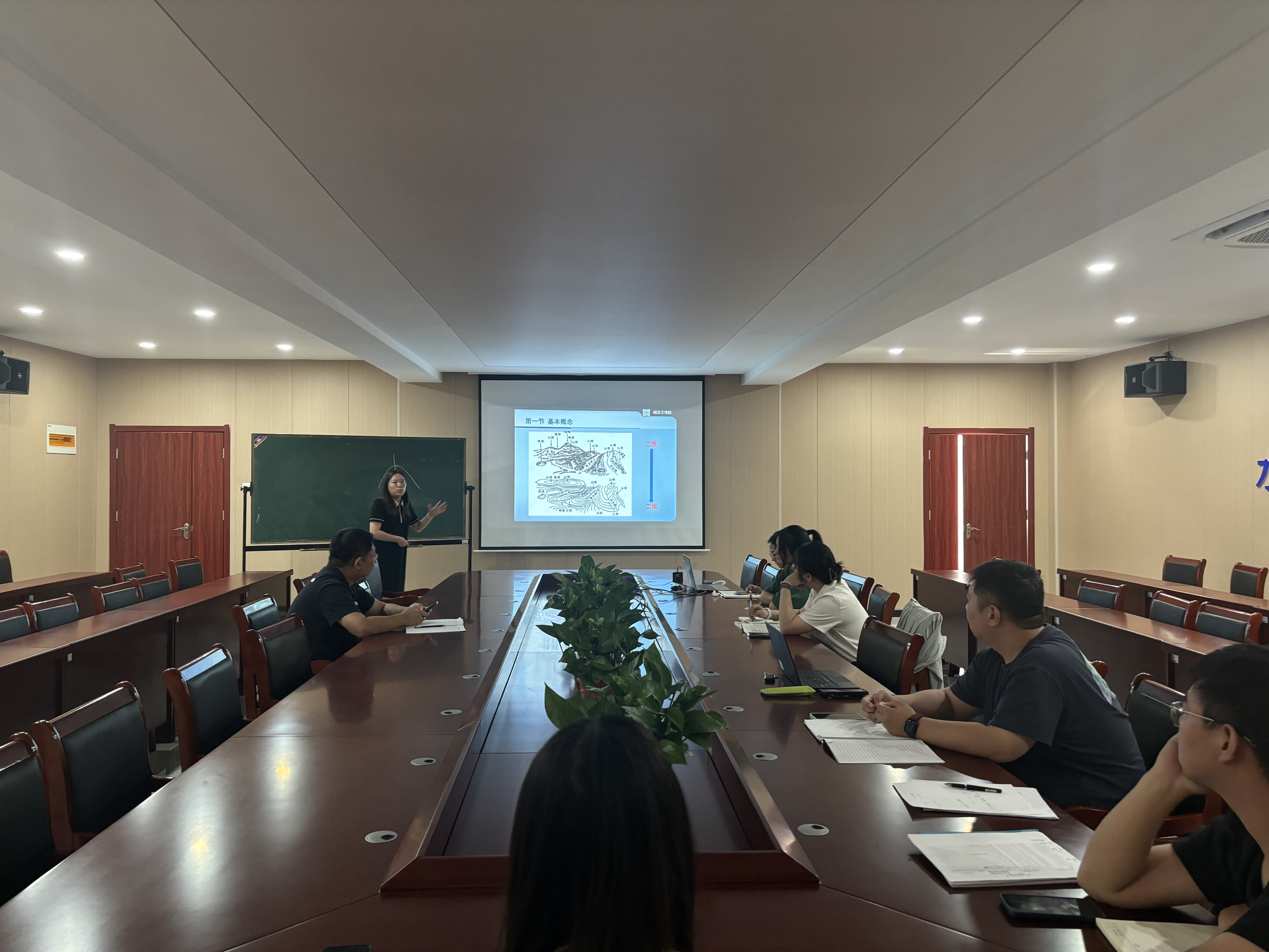 接着,刘菊老师带来《水文学原理》的试讲。她围绕基本概念、水系的地貌特征以及流域的地貌特征展开讲解,使复杂的原理知识变得通俗易懂。值得一提的是,在刘菊老师试讲过程中,张鹏副院长亲身示范该章节的讲授方法,为在场教师提供了宝贵的教学思路。