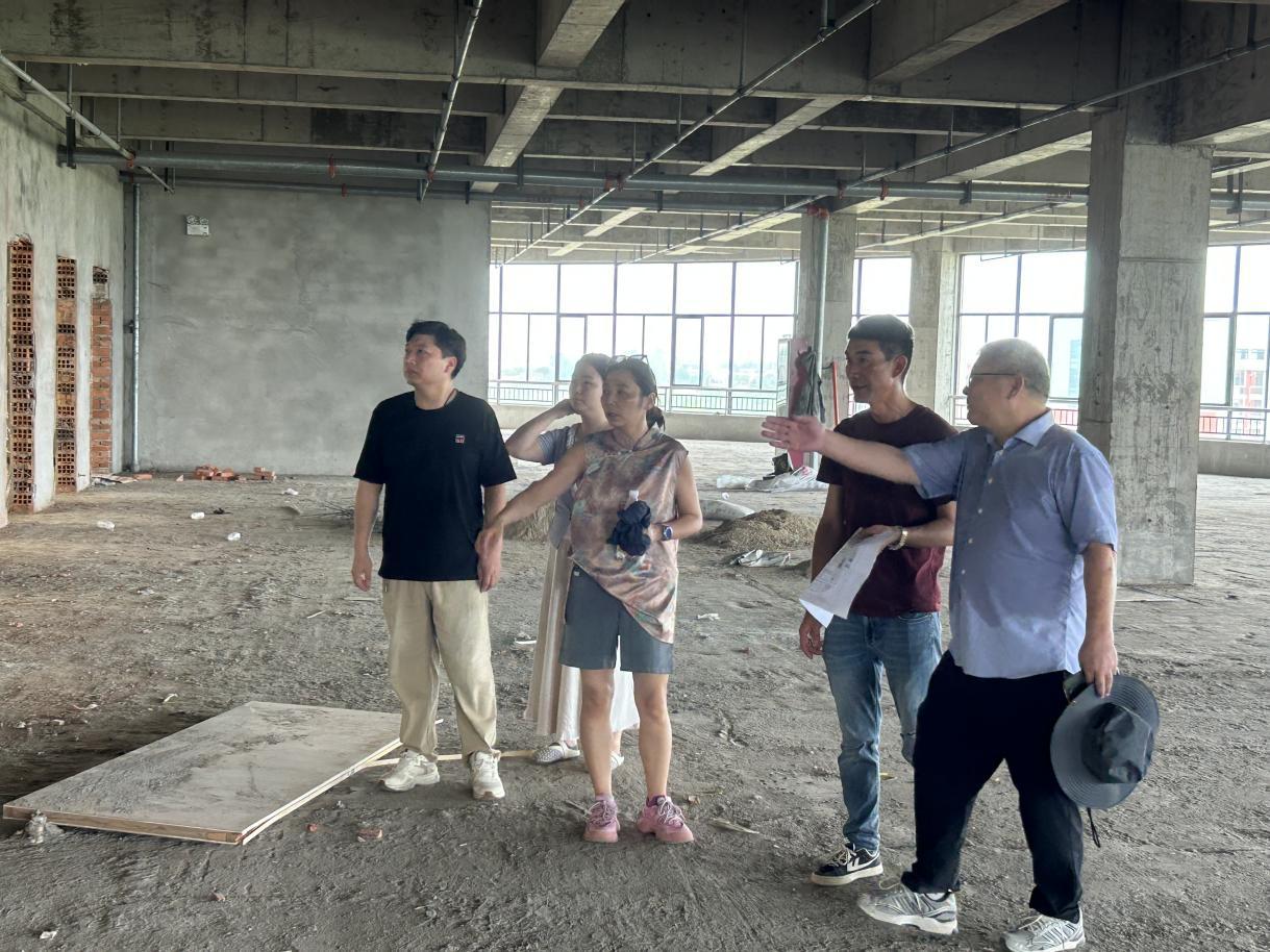7月15日上午,院长伍旭坤,副院长金花,产品设计教研室主任俞晓宇,美育教研室主任曹哲,实验员郑重前往郑蒲港校区图书馆四楼施工现场,重点就专业教室及实验室的装修工作开展施工对接,保障了新学期新教学环境的需求。(艺术设计学院供稿)