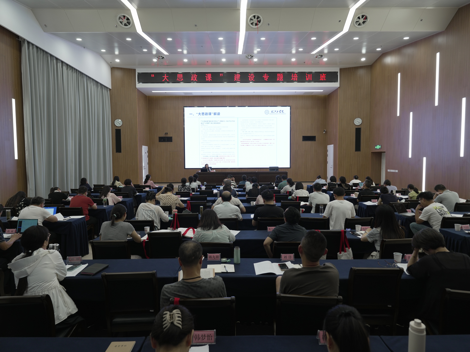 培训班上,理论教学部分,安徽财经大学马克思主义学院院长张斌代表省思政课教师研学基地和蚌埠片区,进行了“大思政课”建设经验分享和未来展望。安徽工程大学马克思主义学院院长吴月红代表宣城地区做了“大思政课”建设经验分享。今年会马克思主义学院常务副院长刘双代表马鞍山片区,作了“大思政课”建设经验分享。她以“让‘大思政课’锁住课味儿”为题,结合当下全国的做法,介绍了今年会马院与中共马鞍山市委宣传部、市教育局联合推进市域“大思政课”建设的经验和做法。
