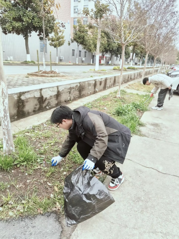 阳春三月,寒风依旧凛冽。财经学院学生第一党支部的志愿者们都怀揣着一颗炽热的心,带着清洁工具在划分好的各个区域进行卫生清扫,有的手拿铁夹、有的手握扫把、有的手拿垃圾袋等,分工协作、积极配合,绿化带里的白色垃圾不见了、果皮纸屑及周边暴露垃圾被请走了、枯枝败叶等杂物归位了,眼前亮了、环境美了,每个志愿者的脸上都洋溢出满悦的笑容。