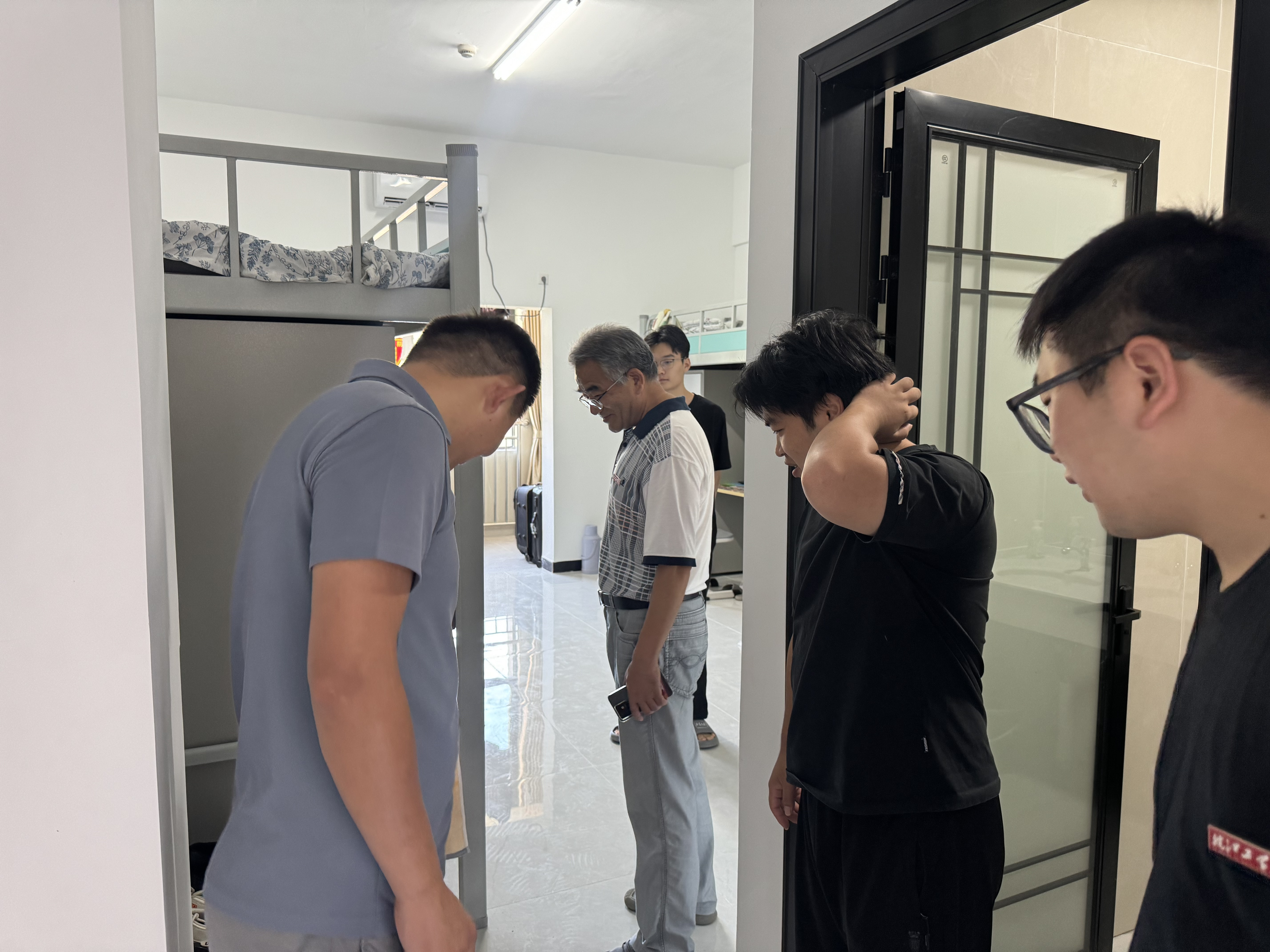 8月29日上午,院党总支书记、副书记程志鹏及辅导员们深入学生公寓,与返校学子亲切交流,询问假期学习生活情况。杨书记叮嘱大家,要尽快调整作息,适应新学期节奏。要求同学们保持好宿舍内部卫生状况、爱护公共设施、规范宿舍管理、注意用电安全、日常中进行细致排查,遇有问题及时报告。