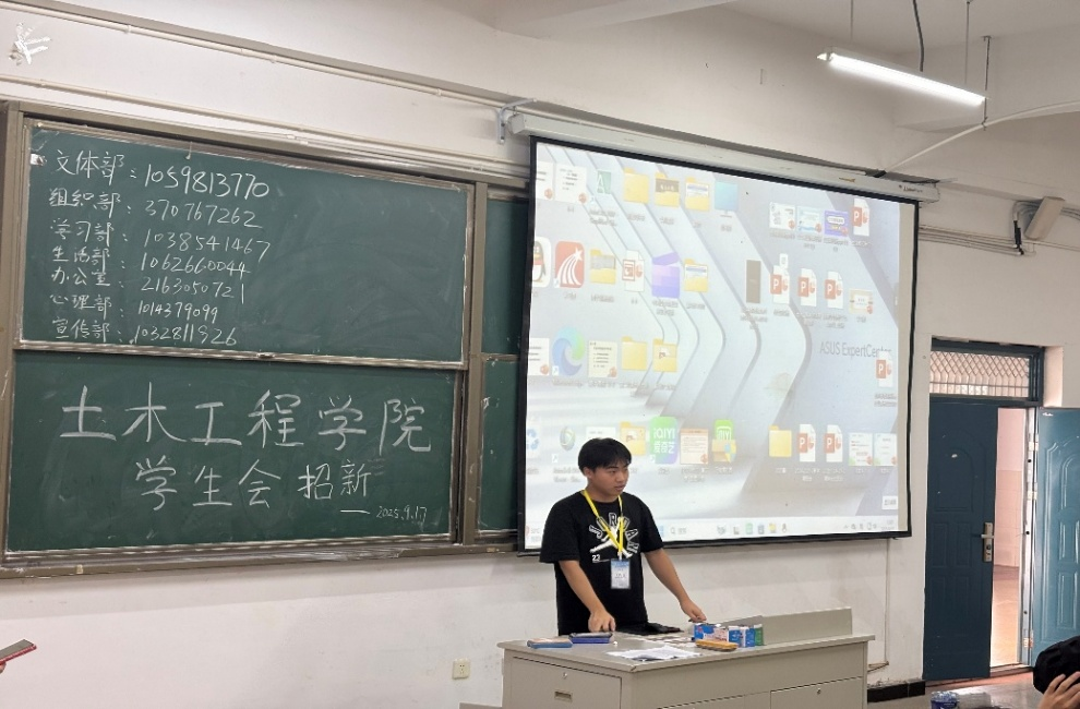 为吸纳新生力量、充实学生组织队伍、提升学生会服务效能,9月17日,土木工程学院学生会在郑蒲港校区D101教室举办第十七届干事招新活动,面向学院2025级新生发出“服务校园、绽放青春”的诚挚邀请,吸引众多有志学子参与。