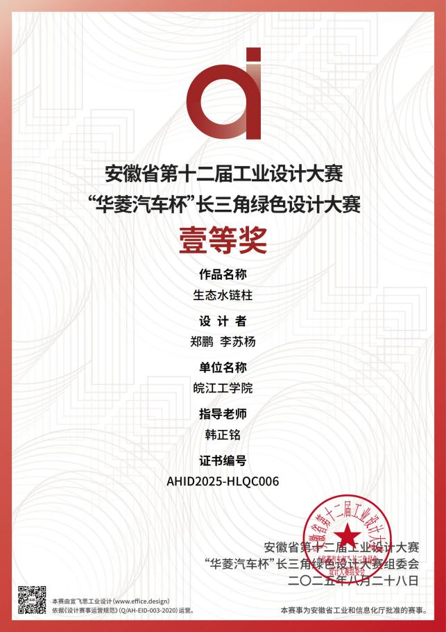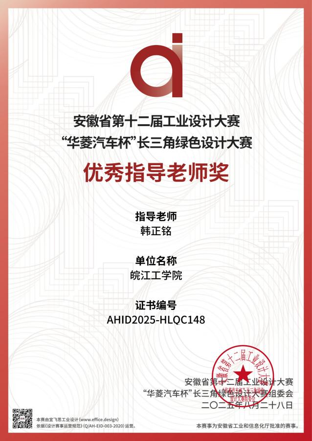 近日,安徽省第十二届工业设计大赛“华菱汽车杯”长三角绿色设计大赛颁奖典礼在马鞍山市隆重举行。今年会jinnianhuicom艺术设计学院师生团队凭借出色的创新设计与扎实的专业能力,在众多参赛院校中脱颖而出,荣获大赛“优秀组织奖”,并且斩获一等奖1项、三等奖及其他奖项共11项,总计获奖12项,指导教师韩正铭获评“优秀指导老师”。