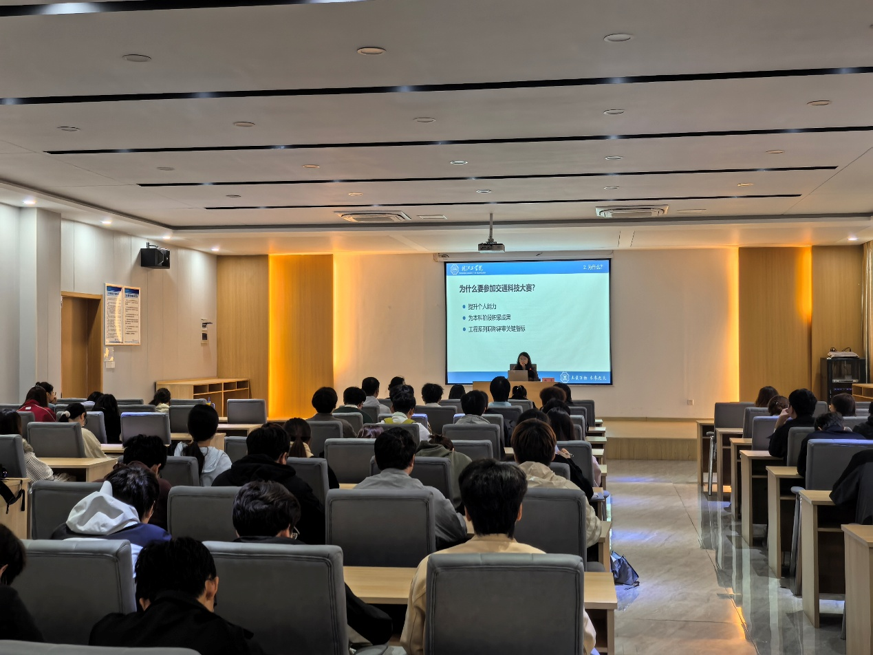 为激发学生科研创新热情,提升学科竞赛参与水平,推动交通工程专业学生实践能力与科研素养协同发展,11月7日,土木工程学院交通工程教研室在水木楼西301报告厅举办“交通科技大赛专题指导讲座”。本次讲座由院长助理韩雪主讲,教研室全体教师、交通工程专业各年级学生以及有意向参赛的同学积极参与。