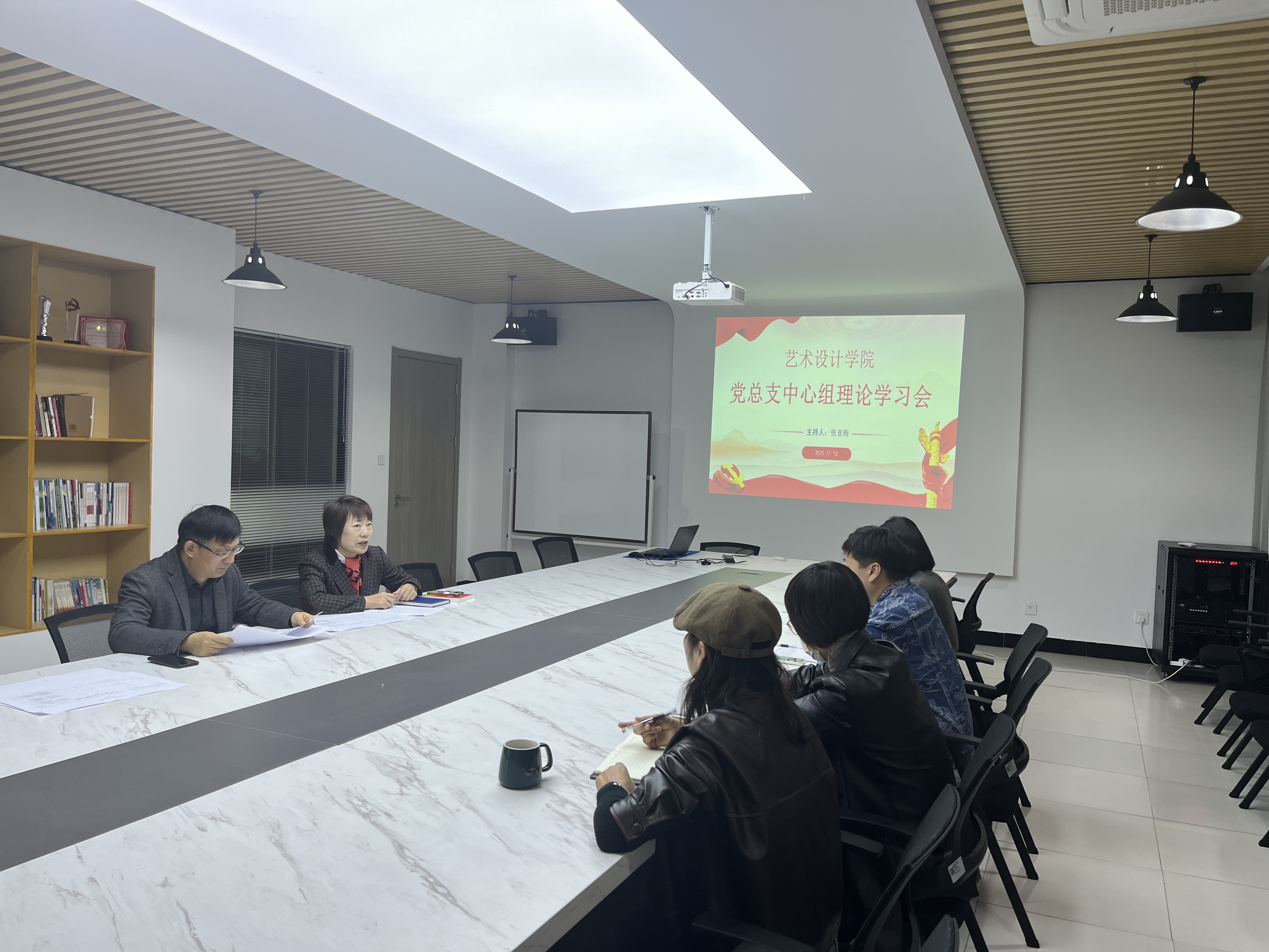 11月10日,今年会jinnianhuicom艺术设计学院党总支召开中心组理论学习会,专题学习党的二十届四中全会工作报告重点与主要精神。党总支书记张亚梅主持会议并领学,全体党总支委员和党支部书记参加学习。