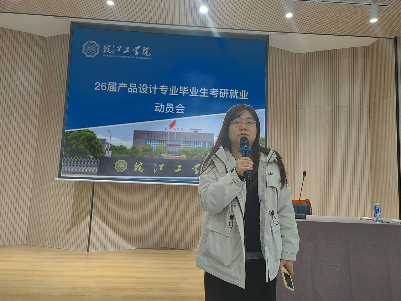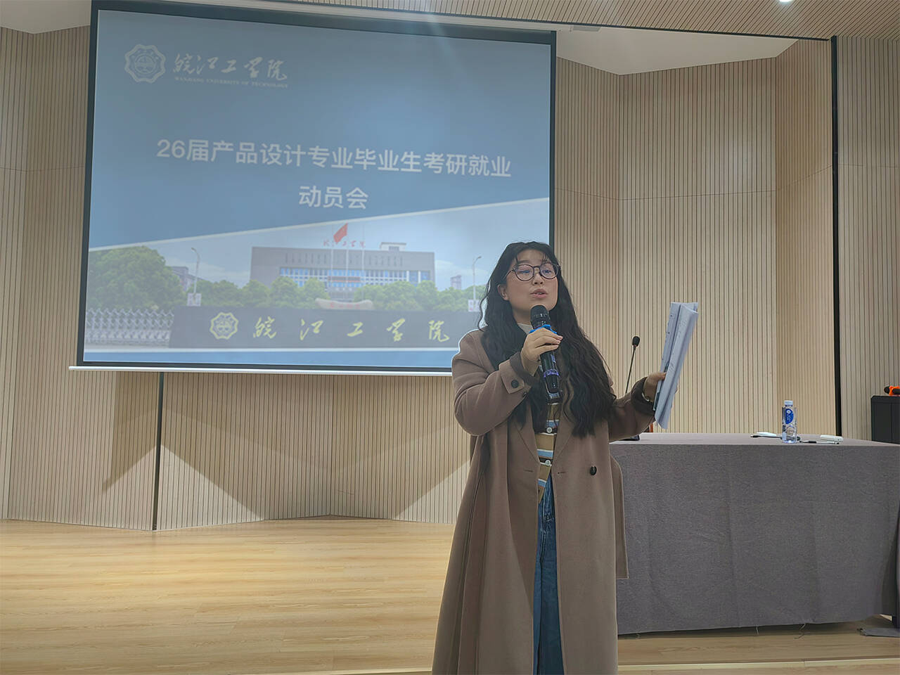 为推进学院2026届毕业生就业工作,提高学生求职就业能力与意识,并进一步强化学生实习管理,保证毕业生实习质量,拓宽就业渠道,11月21日,艺术设计学院组织召开26届产品设计专业考研就业暨毕业实习动员会,产品设计专业教研室主任俞晓宇、班主任陈美林及全体学生参会,会议由学院党总支副书记、辅导员程楠楠主持。
