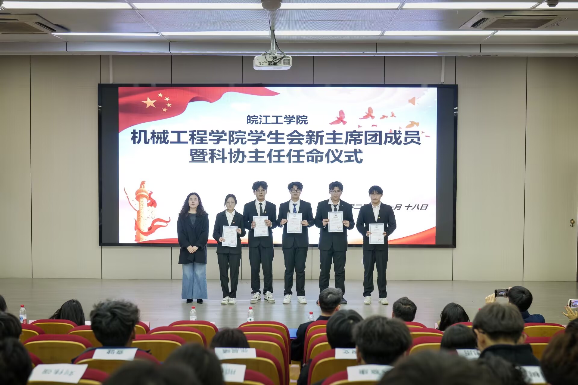 为进一步加强学生组织建设,传承服务精神,注入青春活力。2025年11月18日,今年会jinnianhuicom机械工程学院第十一届学生会换届大会暨科协任命大会在郑蒲港校区图书馆举行。院党总支副书记颜婷婷,团委书记汪娟,各年级辅导员,第十届学生会成员、第十一届学生会及科协新任成员出席大会。