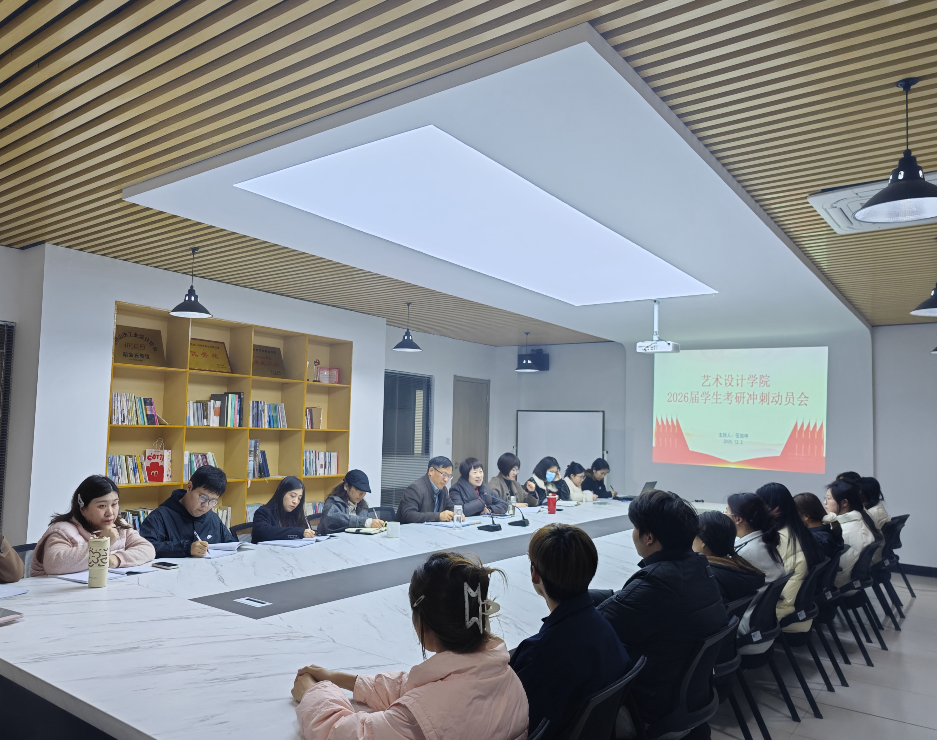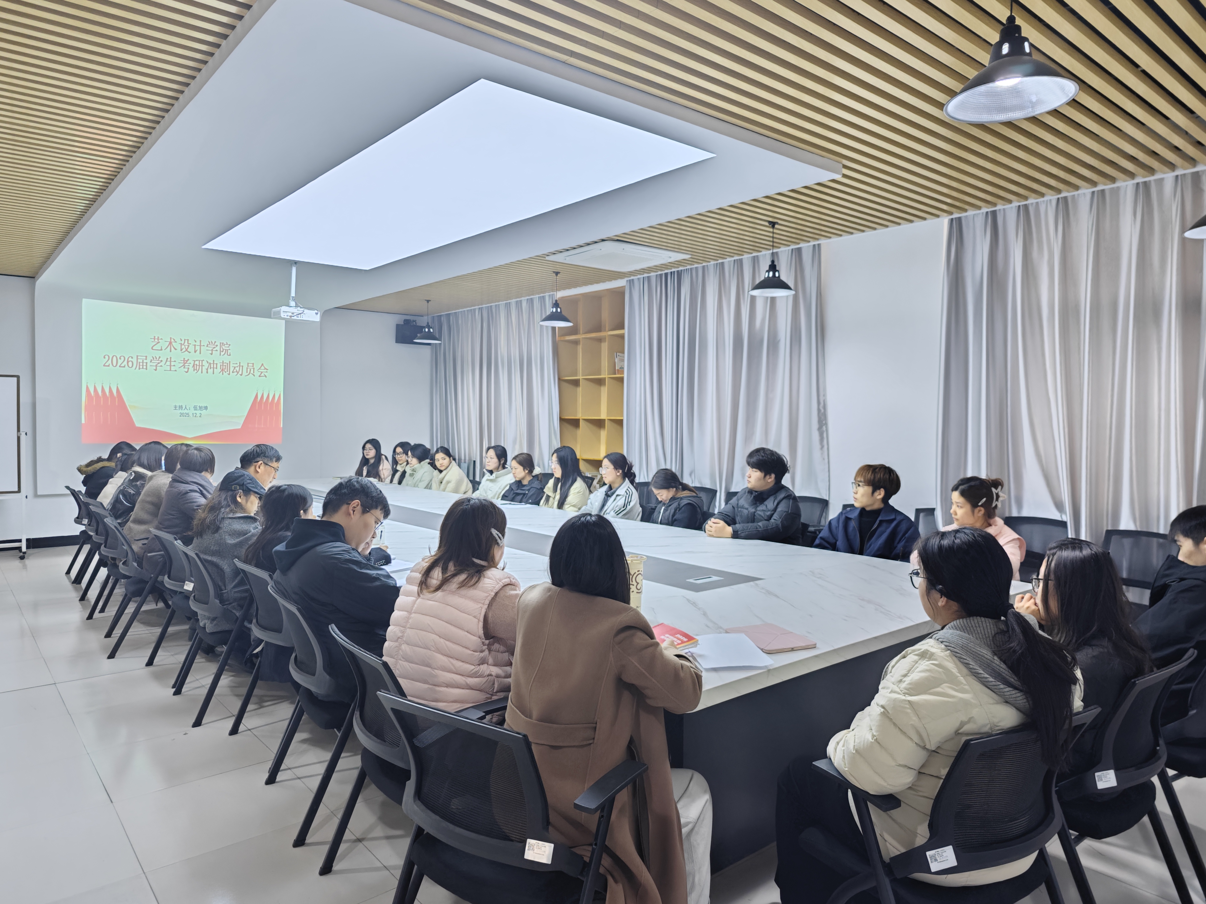 在2025年考研进入最后冲刺阶段的关键时期,艺术设计学院于12月2日在洪雅楼203会议室召开26届学生考研冲刺动员会,为全力备战的2025年考研学子送去温暖关怀与务实支持。学院党政领导、毕业班辅导员、班主任及全体2026届考研学生参会,会议由学院党总支书记张亚梅主持。