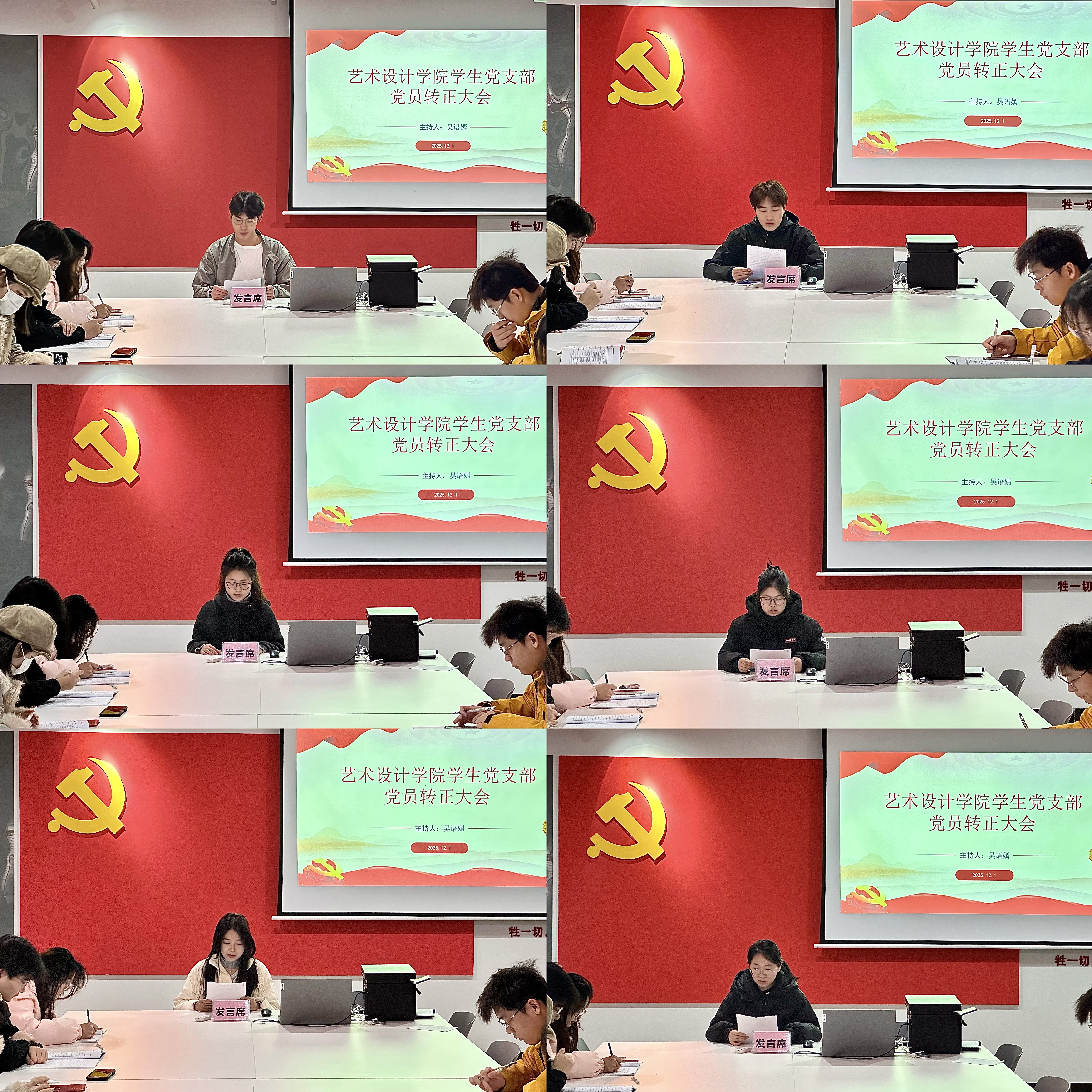 此次党员转正大会,既严格履行了党员发展程序,为党组织注入了新鲜血液,又通过会前专题学习强化了党性教育,为毕业班党员指明了成长方向。未来,艺术设计学院学生党支部将持续深化党员教育培养工作,针对毕业班党员特点构建常态化教育管理机制,引导全体党员坚定理想信念、提升党性修养,以青春之我、奋斗之我在新时代新征程中勇担使命,用艺术专长绘就无愧于党组织、无愧于时代的精彩答卷!(艺术设计学院供稿)