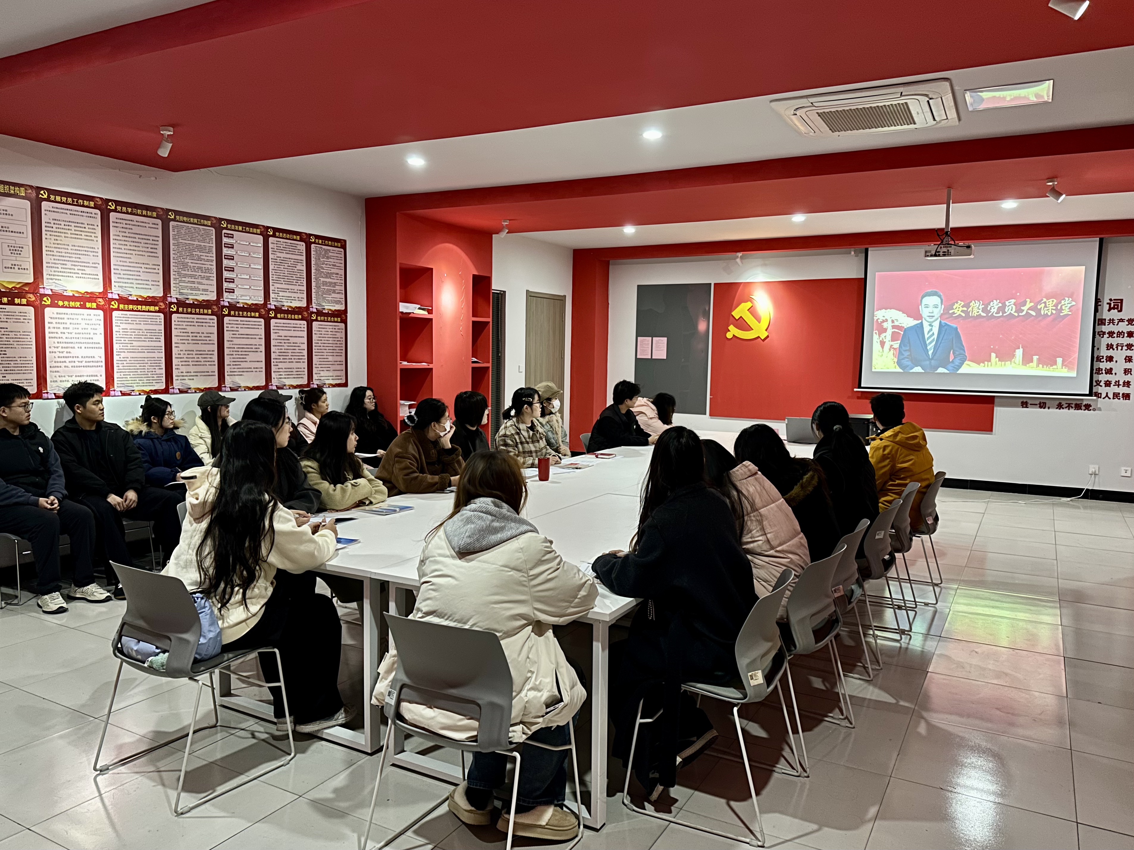 2025年12月1日,艺术设计学院学生党支部在洪雅楼党员活动室召开党员大会,专题讨论黄宇嘉等6名预备党员的转正事宜。会前,全体参会同志集中观看了“安徽党员大课堂”《金寨星火红 信仰立千秋》专题学习内容,重温习近平总书记考察安徽重要讲话精神,在金寨革命先烈的忠诚担当与奉献精神中接受思想淬炼,进一步明晰新时代青年党员的使命方向。党总支副书记程楠楠莅临指导,学生党支部全体党员参会,会议由党支部书记吴语嫣主持。