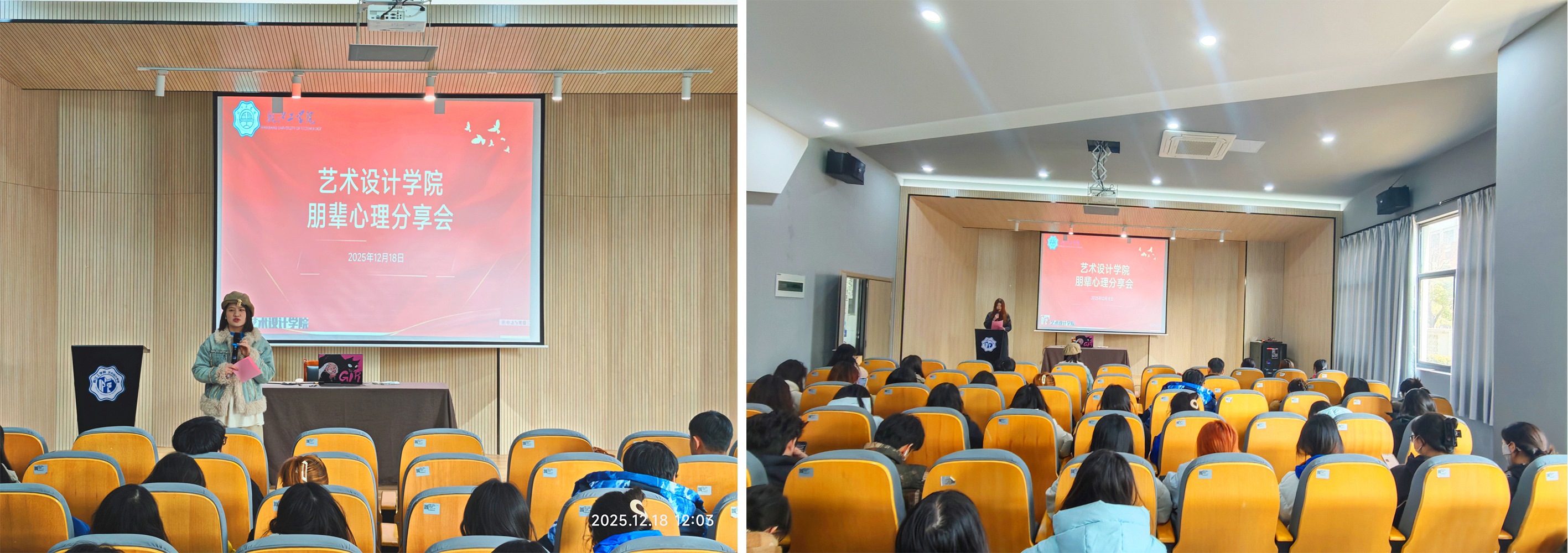 为全面提升学生心理骨干队伍的互助能力,夯实基层心理支持网络,艺术设计学院于2025年12月17日至18日,分别在两校区组织开展了专题朋辈心理分享会。活动旨在通过经验分享与技能培训,赋能班级心理工作队伍,共同营造积极健康的校园心理氛围。两校区活动累计吸引百余名各年级心理委员、心理信息员及班委骨干参与。