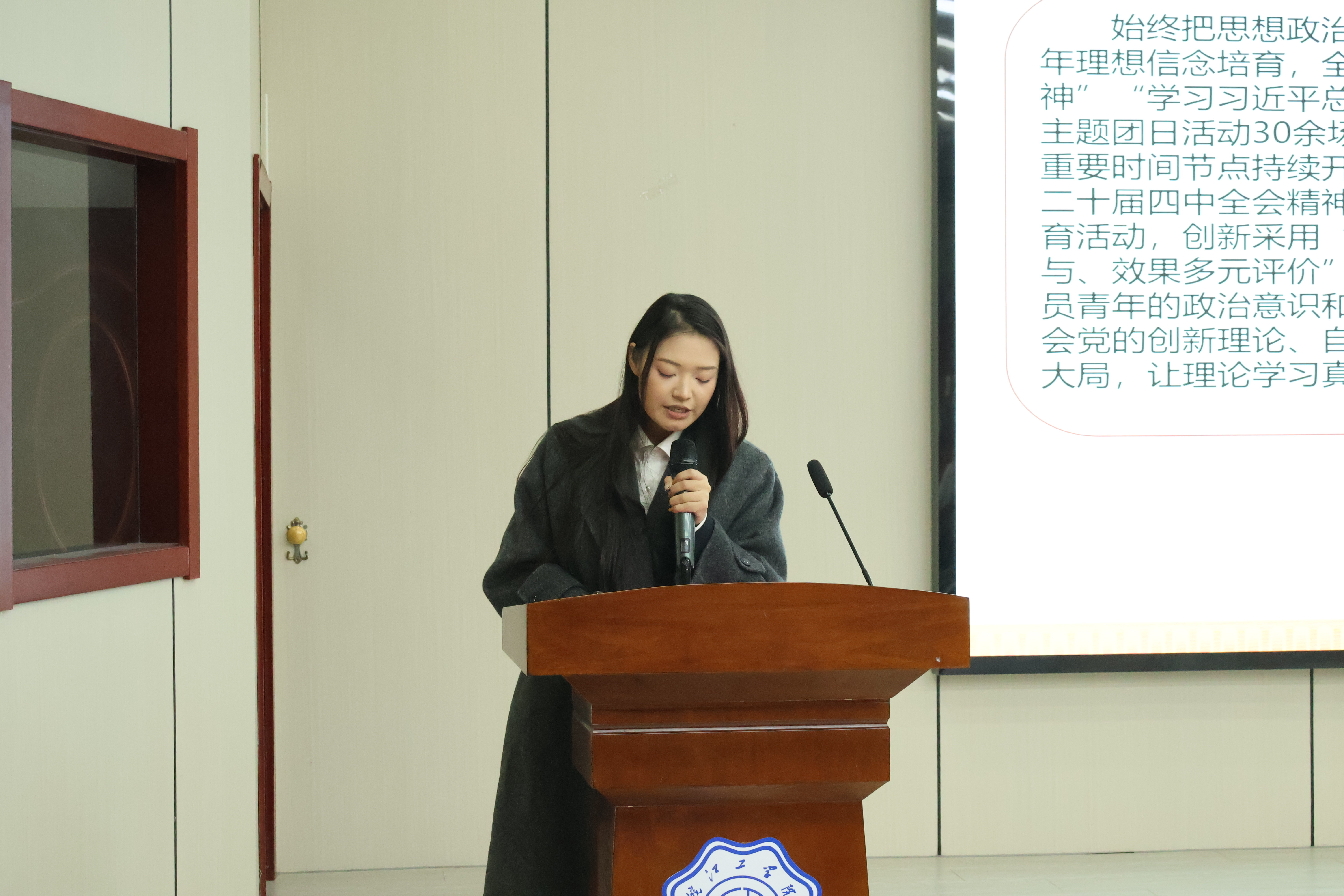 在部门述职环节,学生会及分团委所属各部门负责人依次上台,围绕本年度工作实效与未来规划进行汇报。