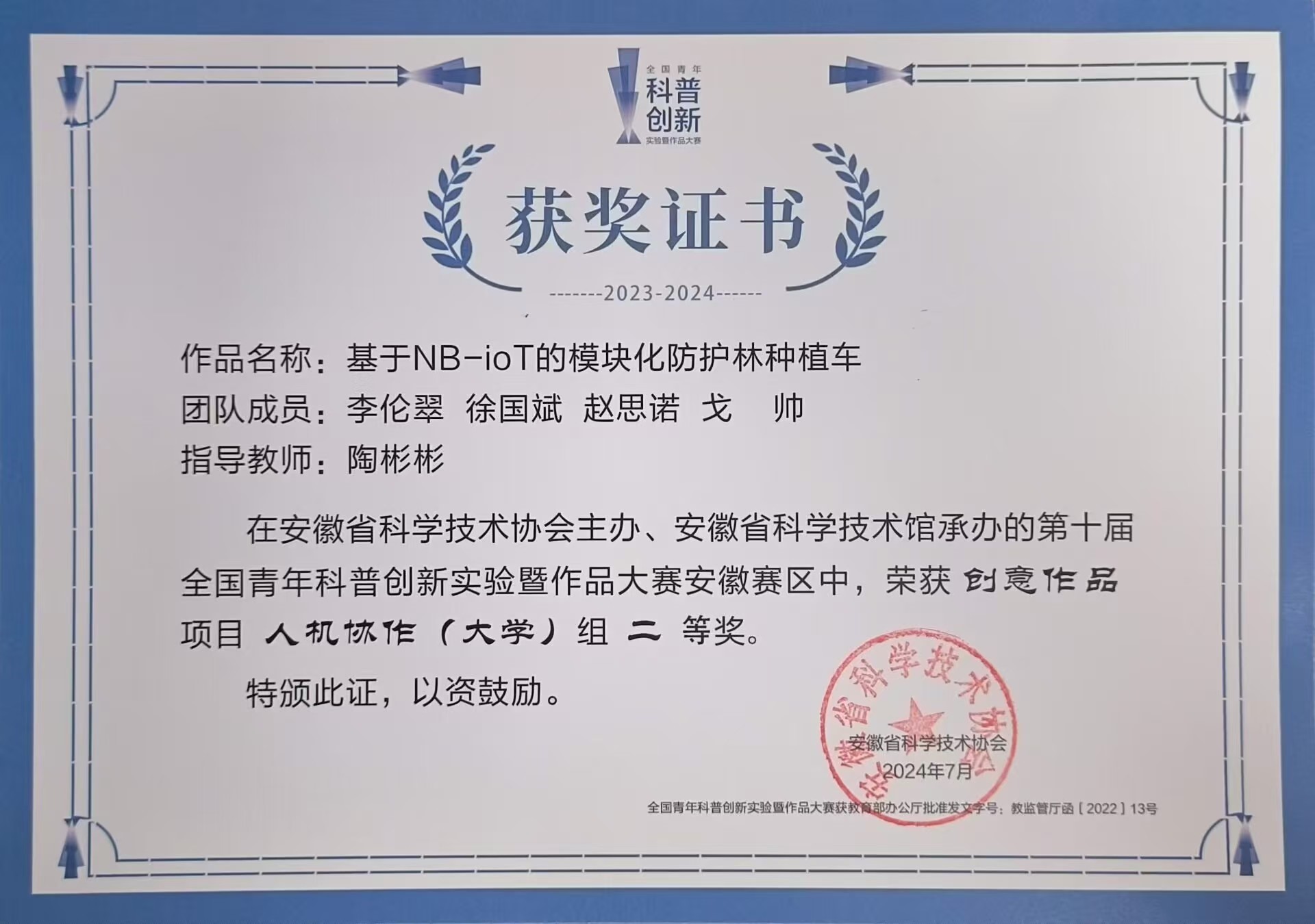 今年会学子荣获第十届全国青年科普创新实验暨作品大赛全国银奖