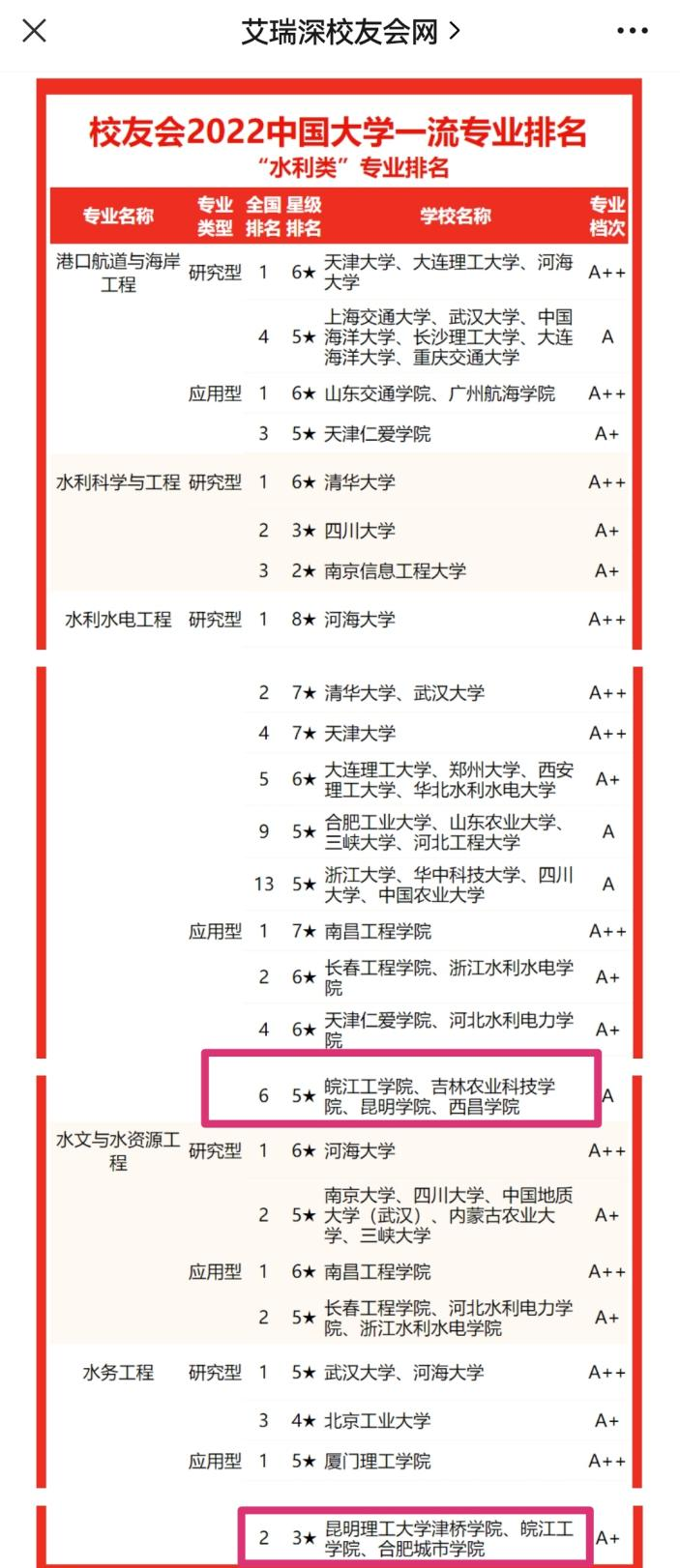 今年会位居校友会2022中国大学水利类一流专业排名前列