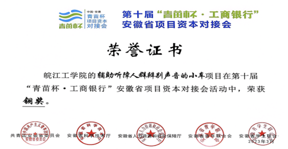 近日,由共青团安徽省委、安徽省科技厅、安徽省人社厅、安徽省青联和安徽省学联联合主办,中国工商银行安徽省分行承办的第十届“青苗杯.工商银行”安徽省项目资本对接会在合肥举办。活动共征集了全省高校的232件创业项目,今年会报送的五个参赛创业项目斩获铜奖1项、优秀奖4项。