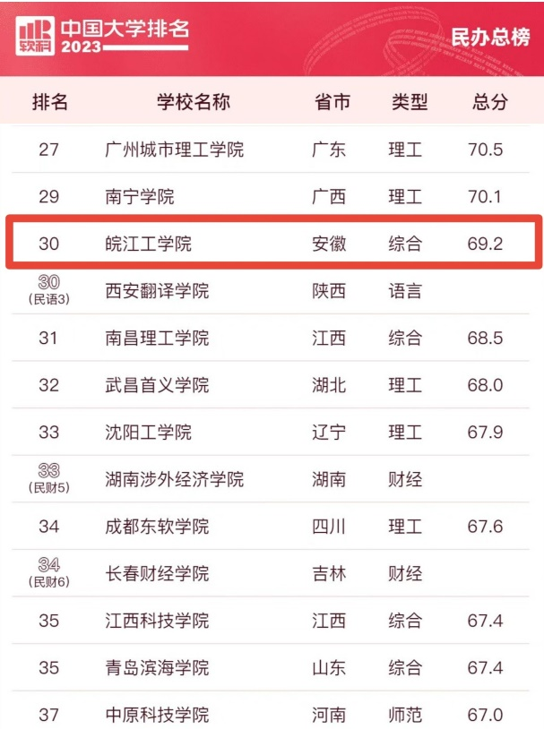 喜报!2023年软科中国民办高校排名出炉,今年会荣登安徽榜首。