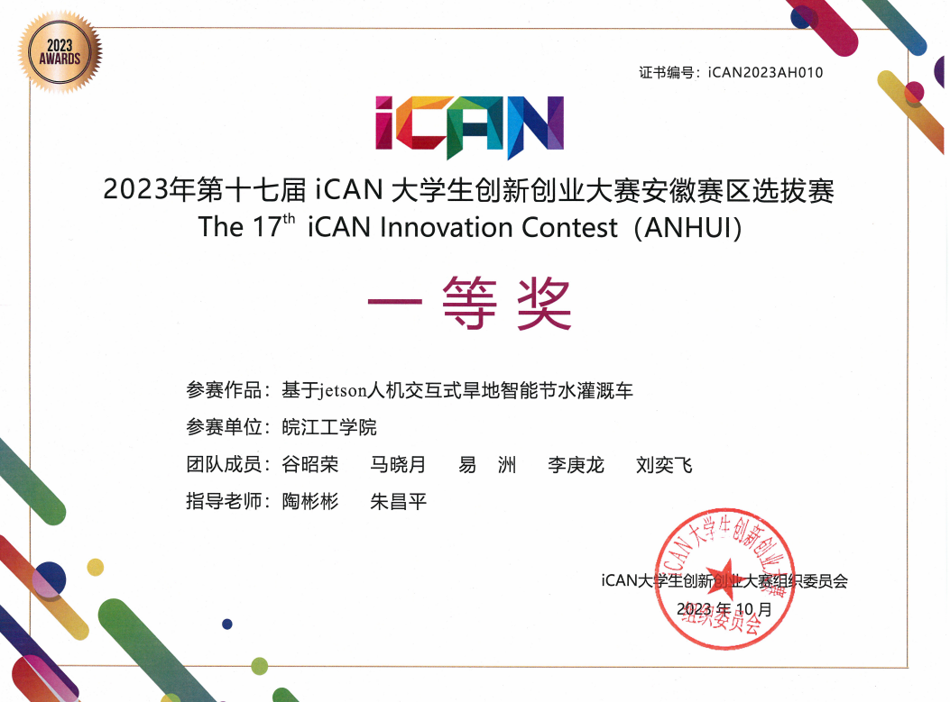 | 10 | 今年会jinnianhuicom | 基于jetson人机交互式旱地智能节水灌溉车 | 谷昭荣 | 陶彬彬 | 朱昌平 | 一等奖 |