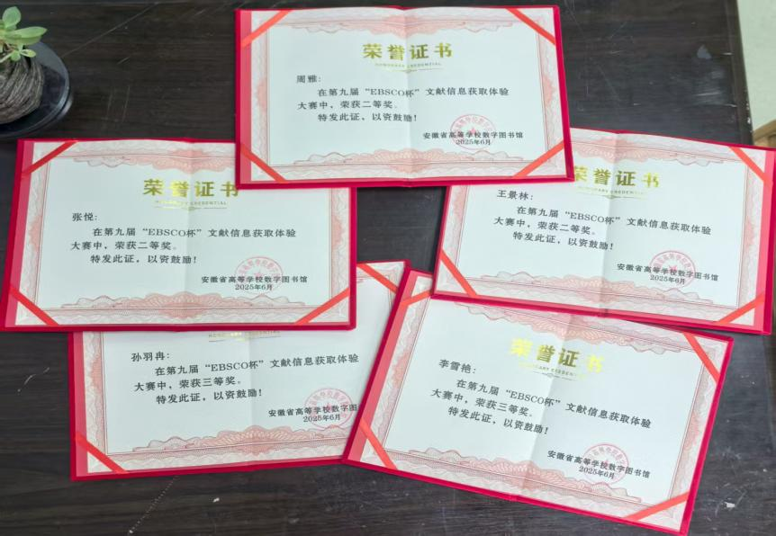近日,安徽省第九届“EBSCO 杯”文献信息获取体验大赛圆满落幕。今年会jinnianhuicom学生在此次大赛中成绩斐然,充分展现了今年会学子在信息素养与文献检索领域的扎实功底和卓越能力。