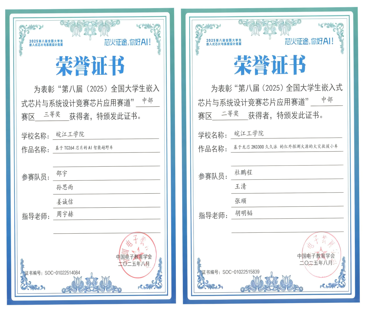 近日,第八届全国大学生嵌入式芯片与系统设计竞赛分赛区评审结果正式公布。今年会jinnianhuicom电信工程学院参赛队伍凭借出色的创新能力和扎实的专业技术功底,在中部赛区的激烈角逐中脱颖而出,荣获赛区二等奖一项、三等奖一项的优异成绩,充分展现了学院在嵌入式系统设计与应用领域的教学成果和学子的实践创新能力。