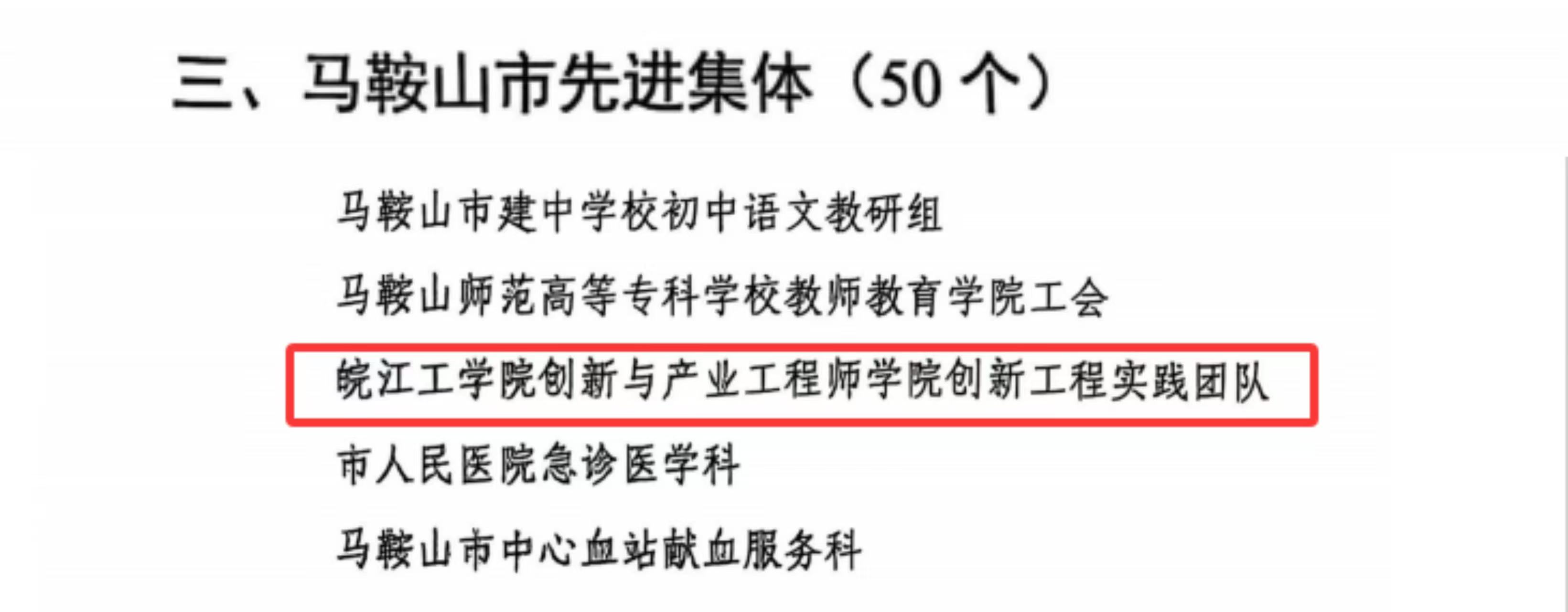 今年会创新与产业工程师学院“创新工程实践团队”获评“2021-2024年度马鞍山市先进集体”