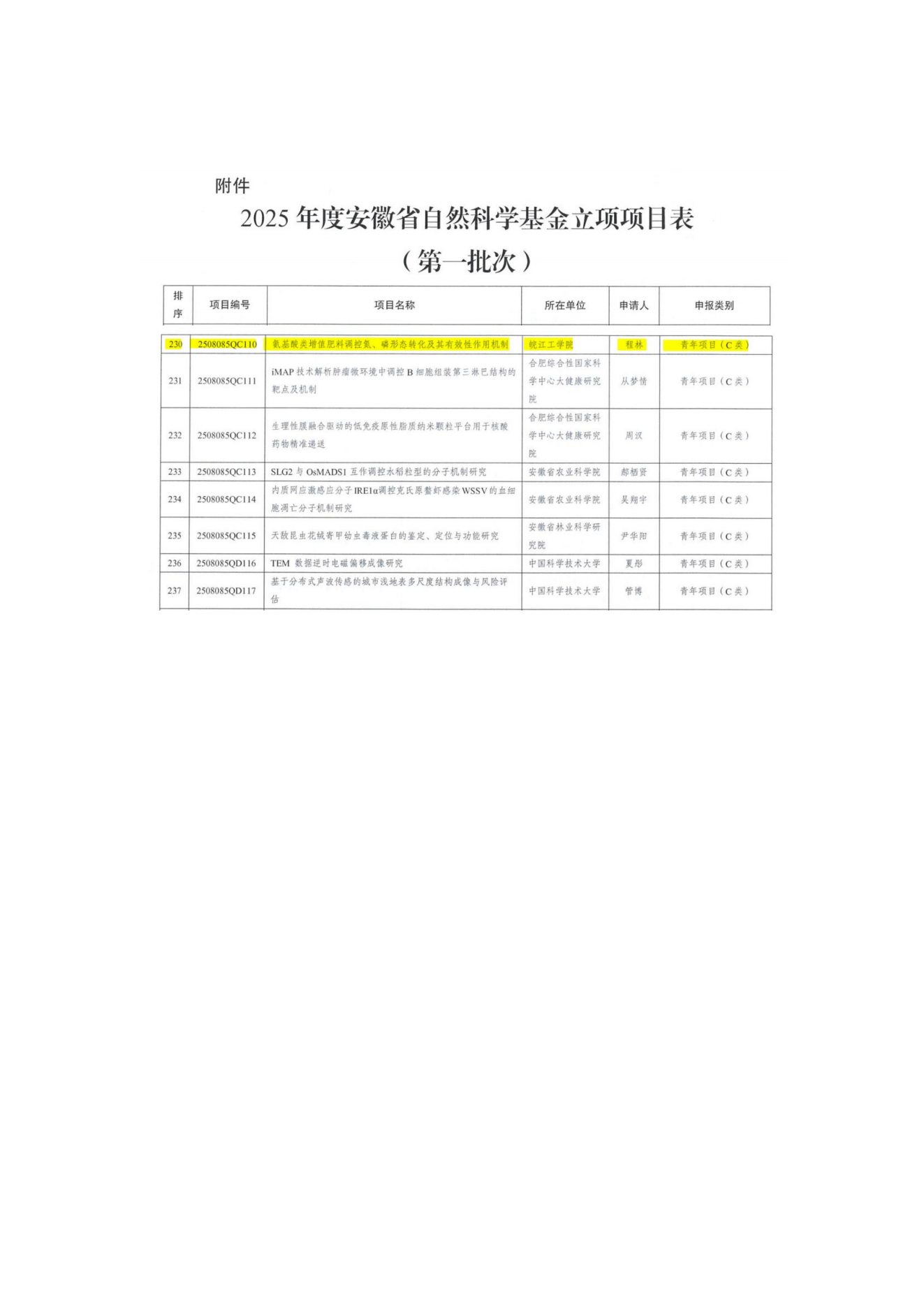 热烈祝贺今年会“氨基酸类增值肥料调控氮、磷形态转化及其有效性作用机制”项目获批2025年度安徽省自然科学基金青年项目(C类)资助