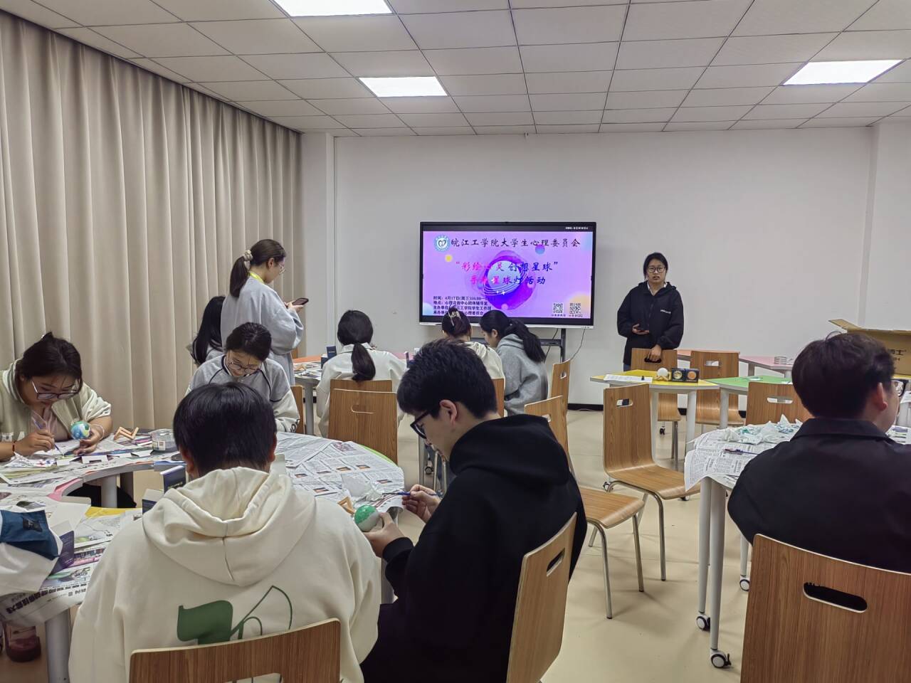 2024年4月17日,大学生心理委员会在霍里山校区团体辅导室举办了以“彩绘心灵,创想星球”为主题的手绘星球灯活动。活动旨在通过艺术创作的方式,为学生提供一个释放压力、表达自我的平台,帮助同学们同学们找到内心的宁静,感受艺术带来的疗愈力量。