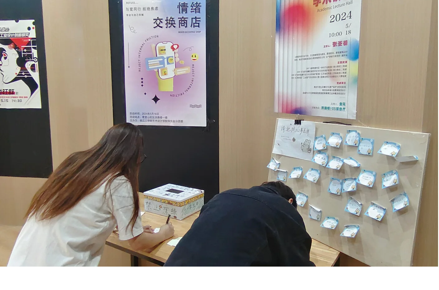 5月16日,艺术设计学院于洪雅楼一楼开展“交换情绪,与爱同行——情绪交换商店”活动,同学们通过书写和口头表达来梳理和分享自己的情绪,并写下一段段励志温情、积极向上的话语。通过此次活动,同学们缓解了心中的紧张情绪,释放了内心的重负,不仅获得快乐,也将自己的快乐传递给了别人,用行动传递了爱与温暖。