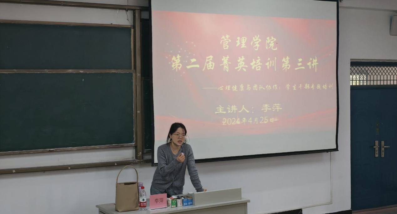 4月25日,管理学院心理工作站老师李萍面向本院学生干部,开展“心理健康与团队协作”主题讲座。李萍讲解了心理健康的重要性,以及如何通过团队协作提升工作效率。她强调,良好的心理素质和团队协作能力是学生干部必备的基本素质。她通过生动的案例和实用的技巧,让学生干部们对心理健康和团队协作有了更深入的理解和认识。