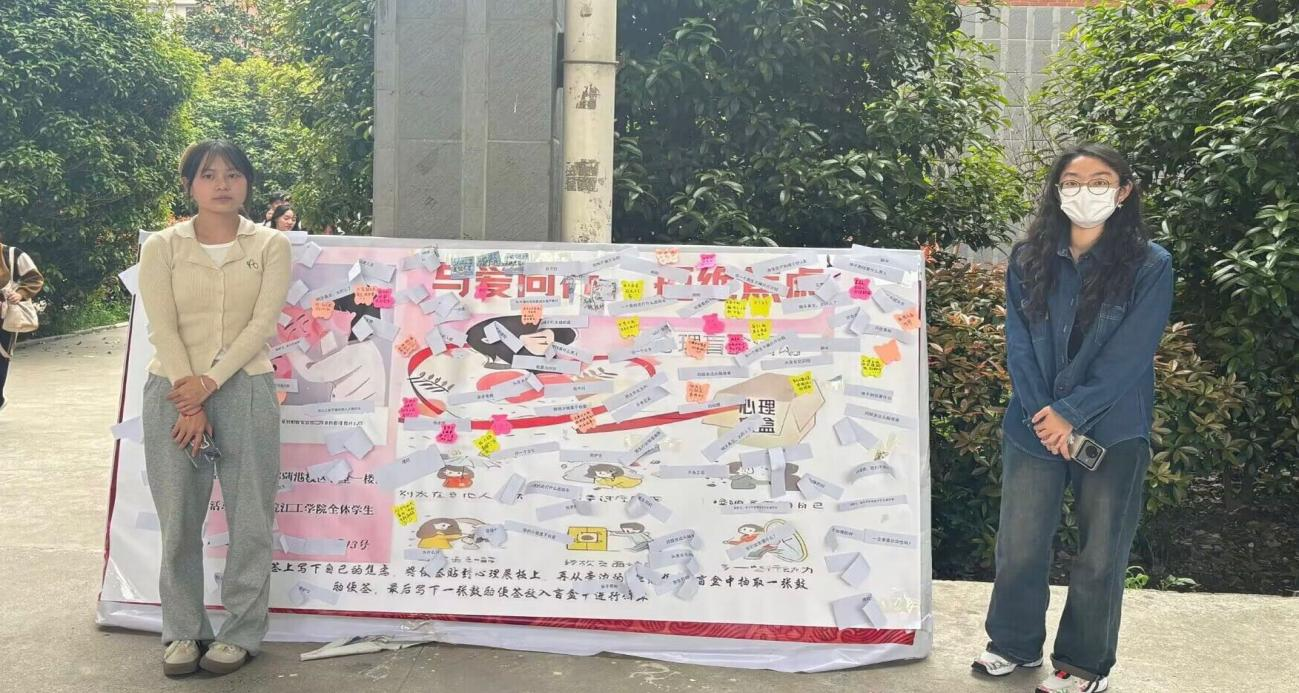 5月22日,电信工程学院、计算机与人工智能学院联合举办了一场主题为“爱自己,终身浪漫的开始”的心理健康教育活动。肆意书写的涂鸦墙吸引了同学们的兴趣,路过同学纷纷在签名墙上签名留下祝福和寄语。同时,活动现场还设置了随机采访,同学在镜头下展望理想中的自己,或是分享生活的幸福。此次活动提高了学生的自我意识,展现了大学生积极昂扬、乐观向上的心态,营造了温暖融洽的校园氛围。